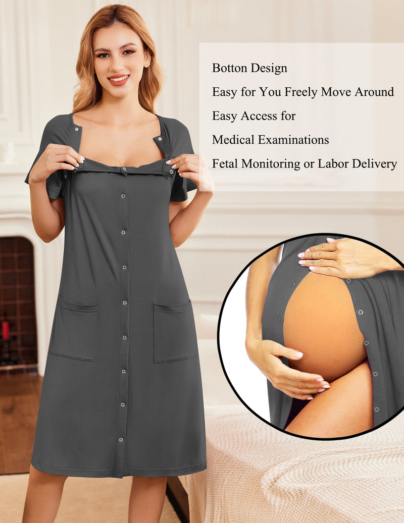 • BEST GIFT CHOICE:This maternity Nightgown can be used through out the labor,delivery,nursing time and the snaps are perfect to easily maneuver and to open the bottom to check the incision or the top to nurse/pump/snuggle baby,perfect baby shower gift.