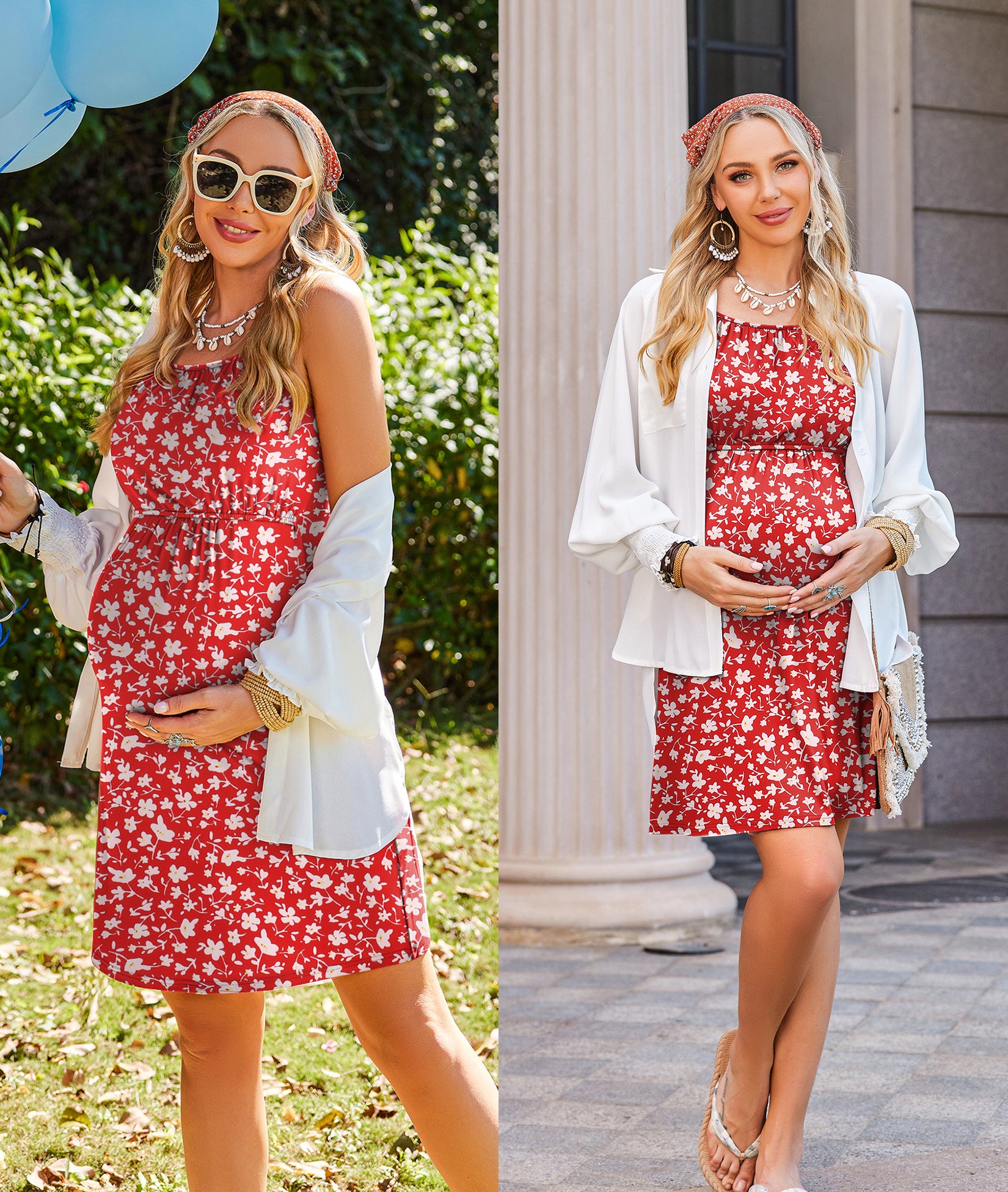 Front double layers wrap with elastic ruched trimmed nursing gown easy to breast-feeding.Adjustable spaghetti strap maternity nursing sleep dress for easy wearing and adjustment to the comfort position you want.
