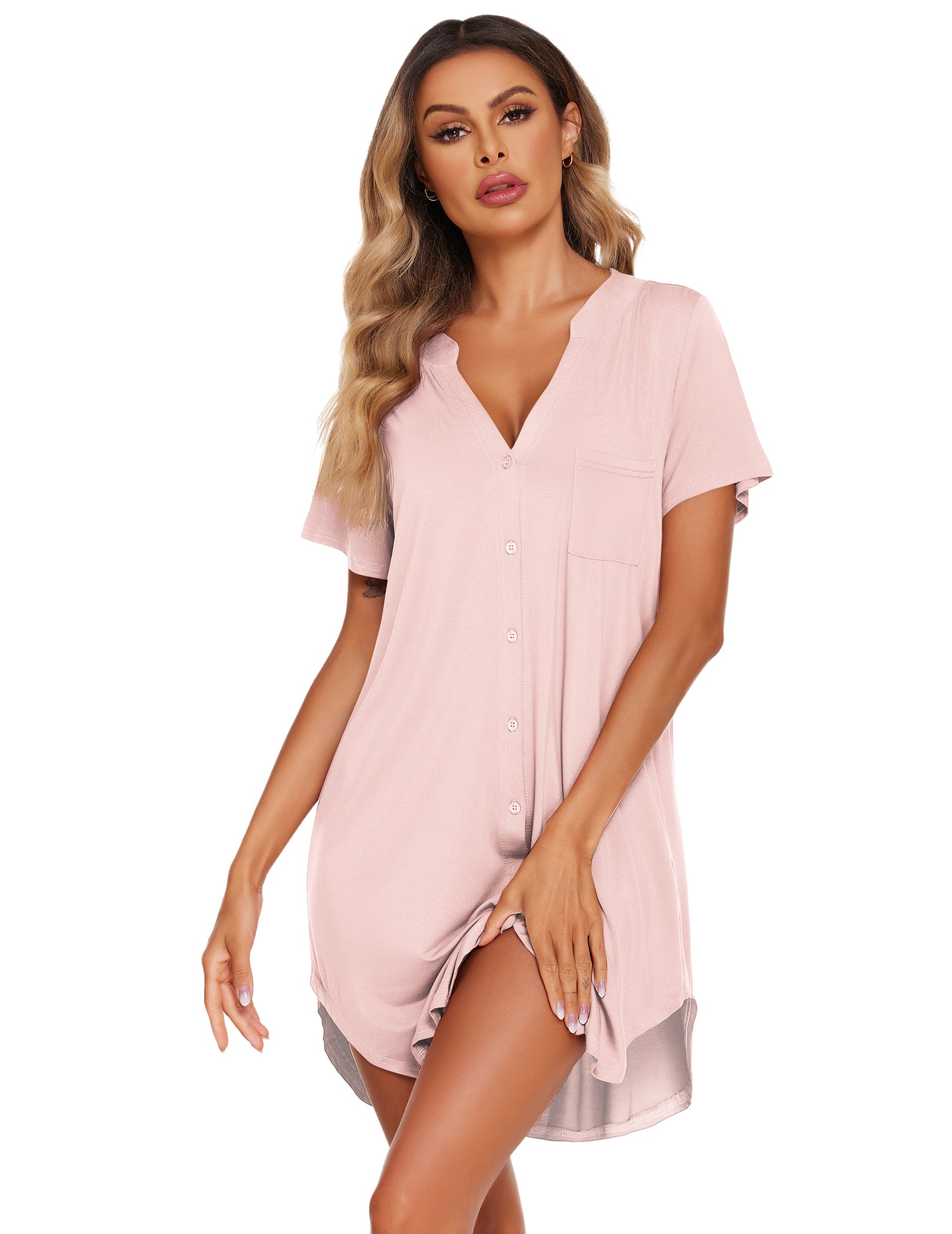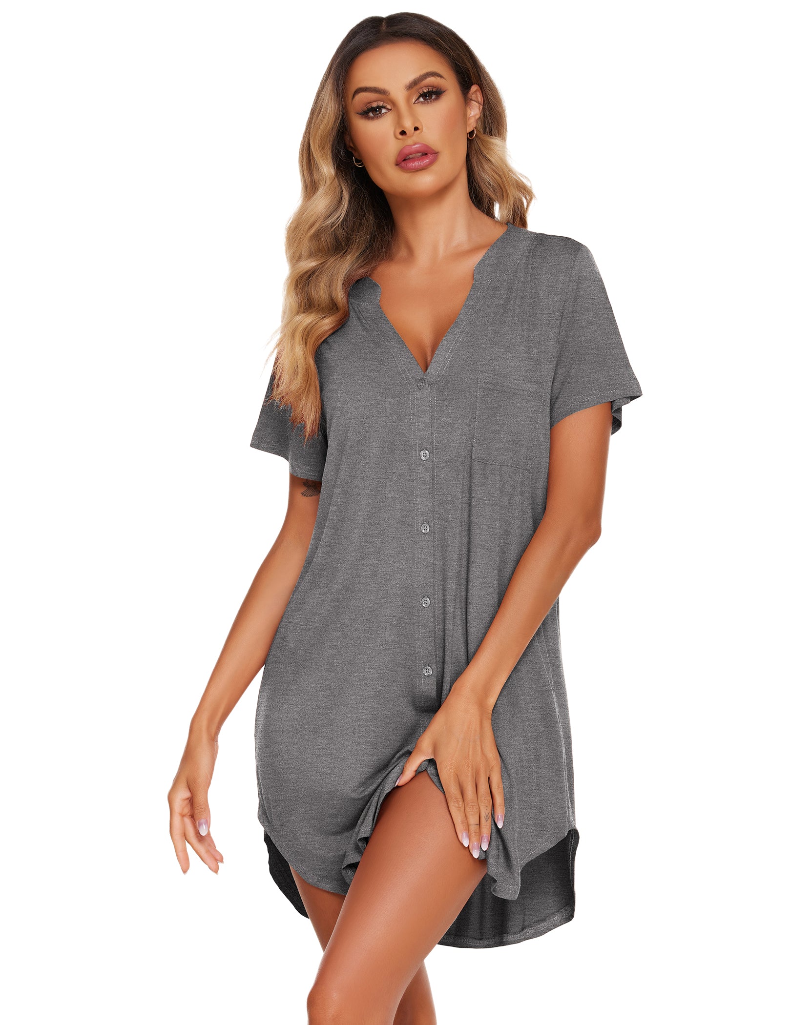 • Button Nightshirt: The sexy sleep dress featuring deep v neck/front button closure/short sleeve,high quality Super soft,breathable sleepshirt takes you comfy and relaxation