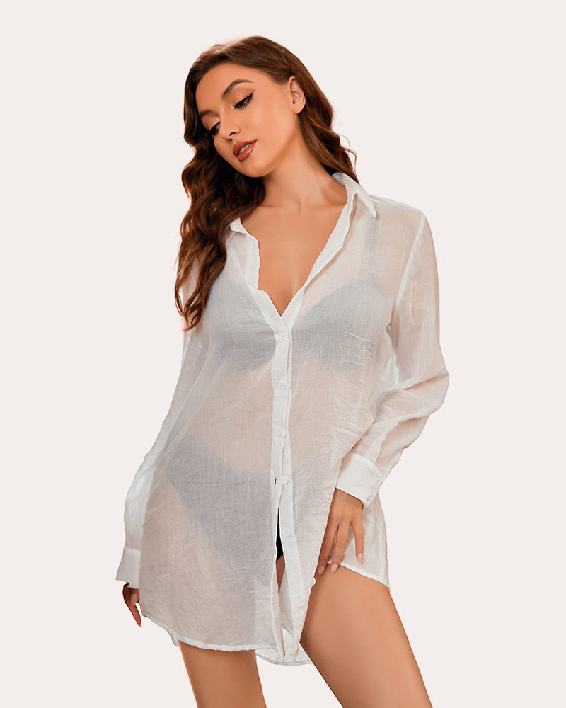 Ekouear Nightshirt Long Sleeve Button Down Sleep Shirt High-low Hem Nightdress (US Only)