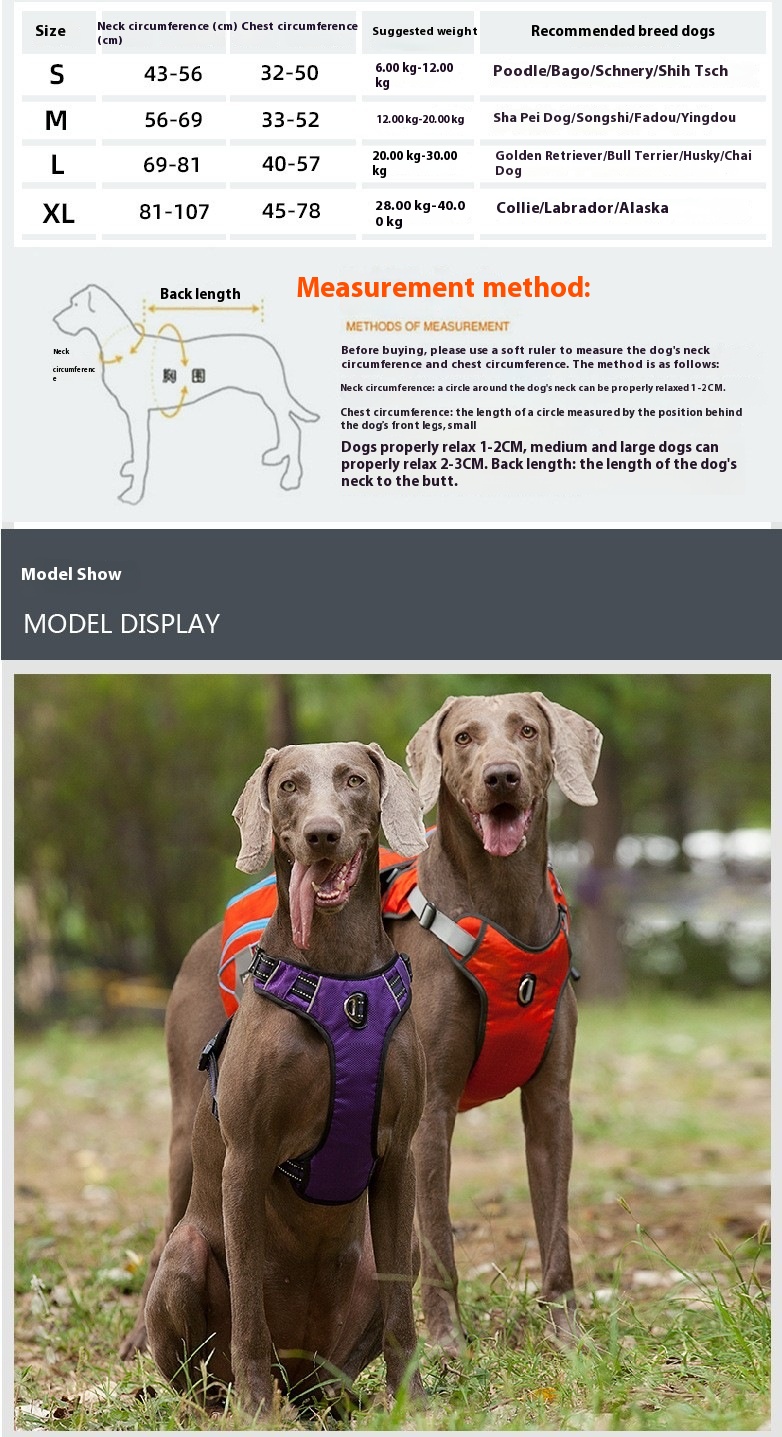 XL: chest circumference 81-107cm scarf 45-78cm recommended 28.00 kg-40.00 kg