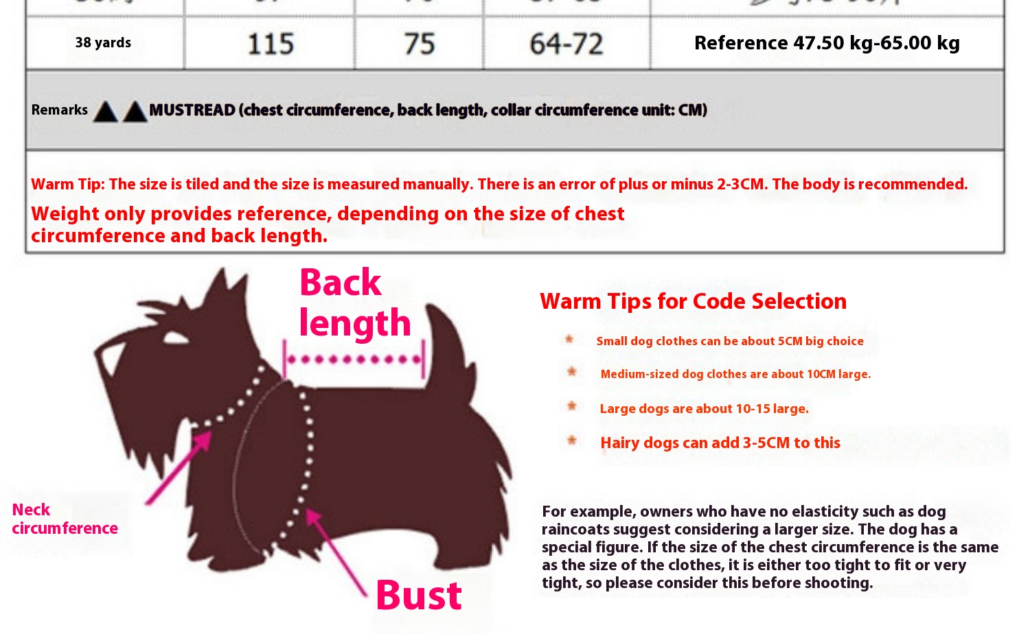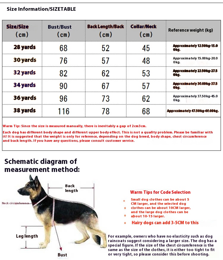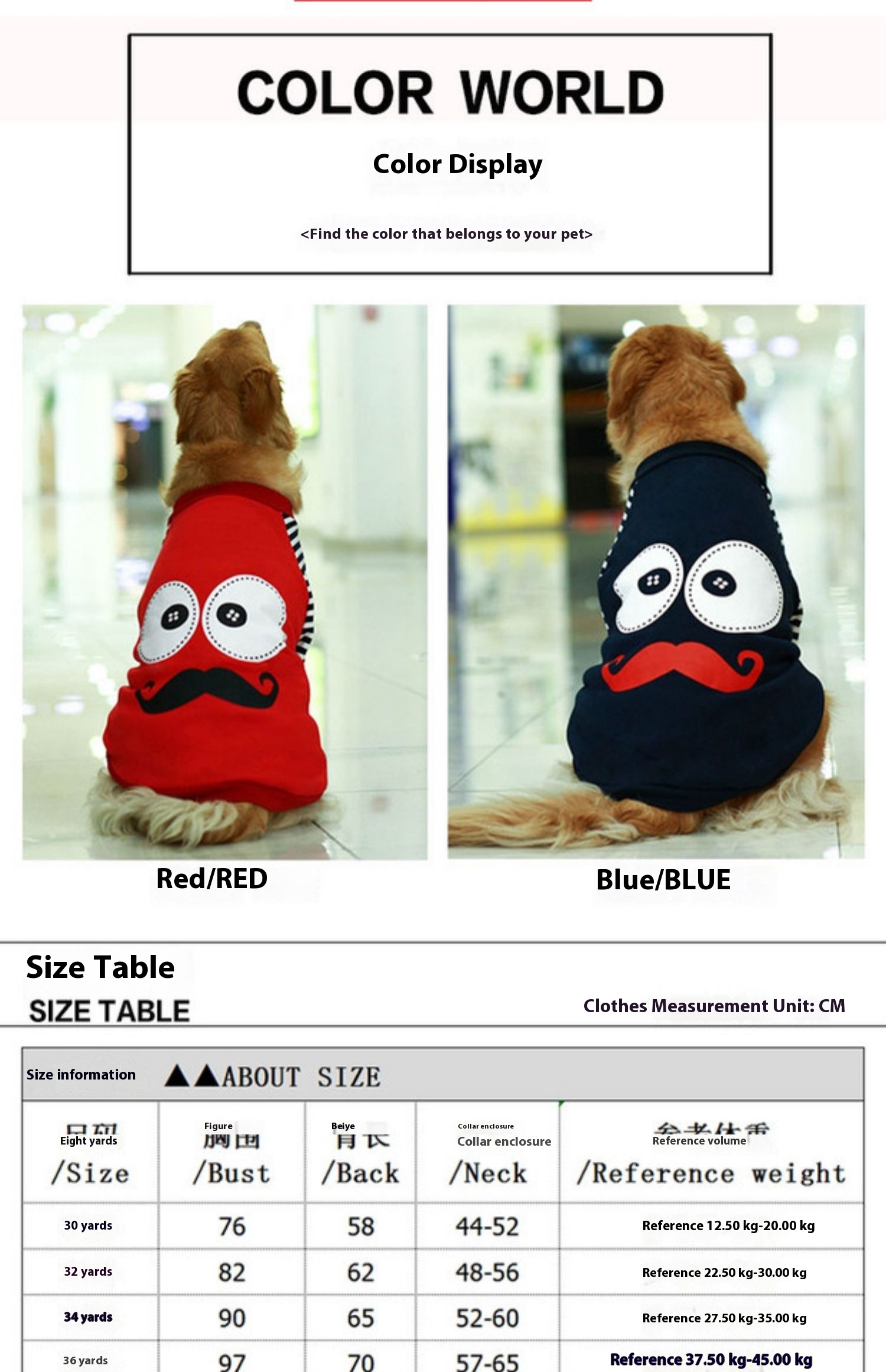 Golden retriever weight 70 Jin wear size 34 for reference