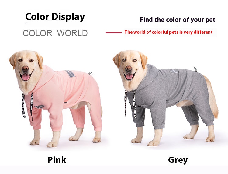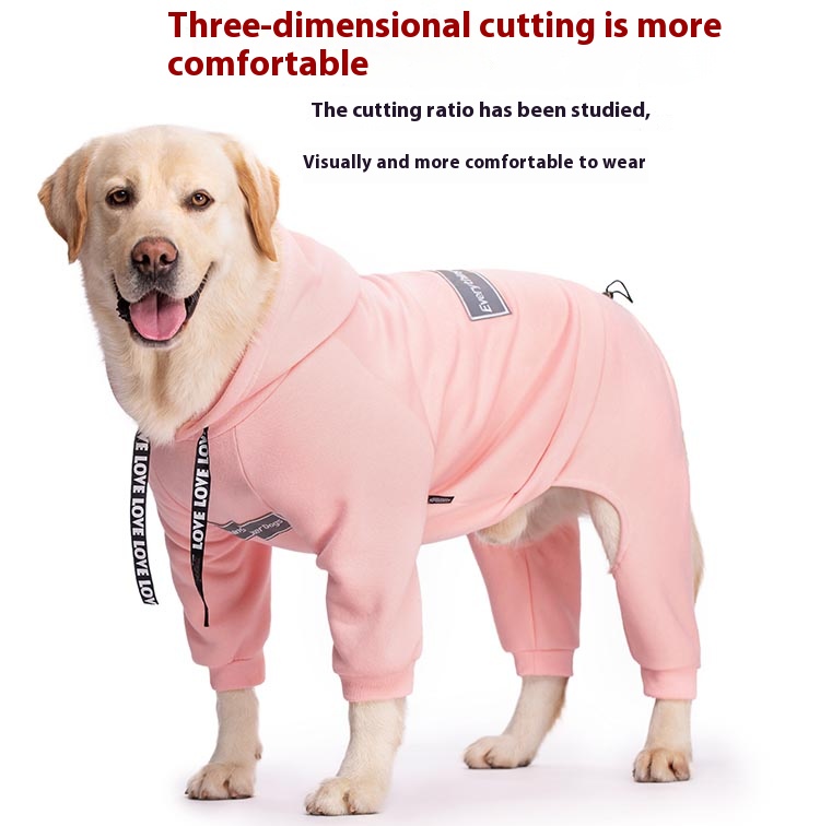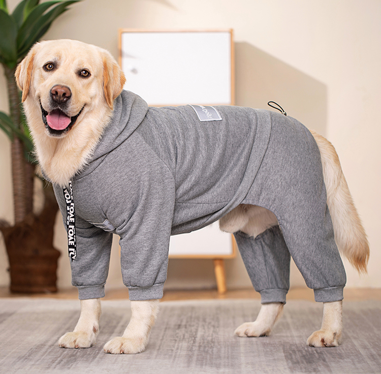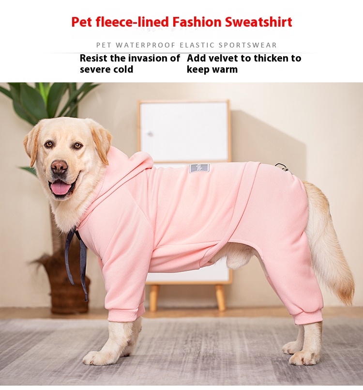 This fleece-lined hooded dog sweater is perfect for medium and large breeds like Golden Retriever, Samoyed, and Labrador. Featuring a four-legged design and adjustable back length, this sweater ensures your pet stays warm and comfortable during cold weather. Ideal for outdoor activities and casual wear.