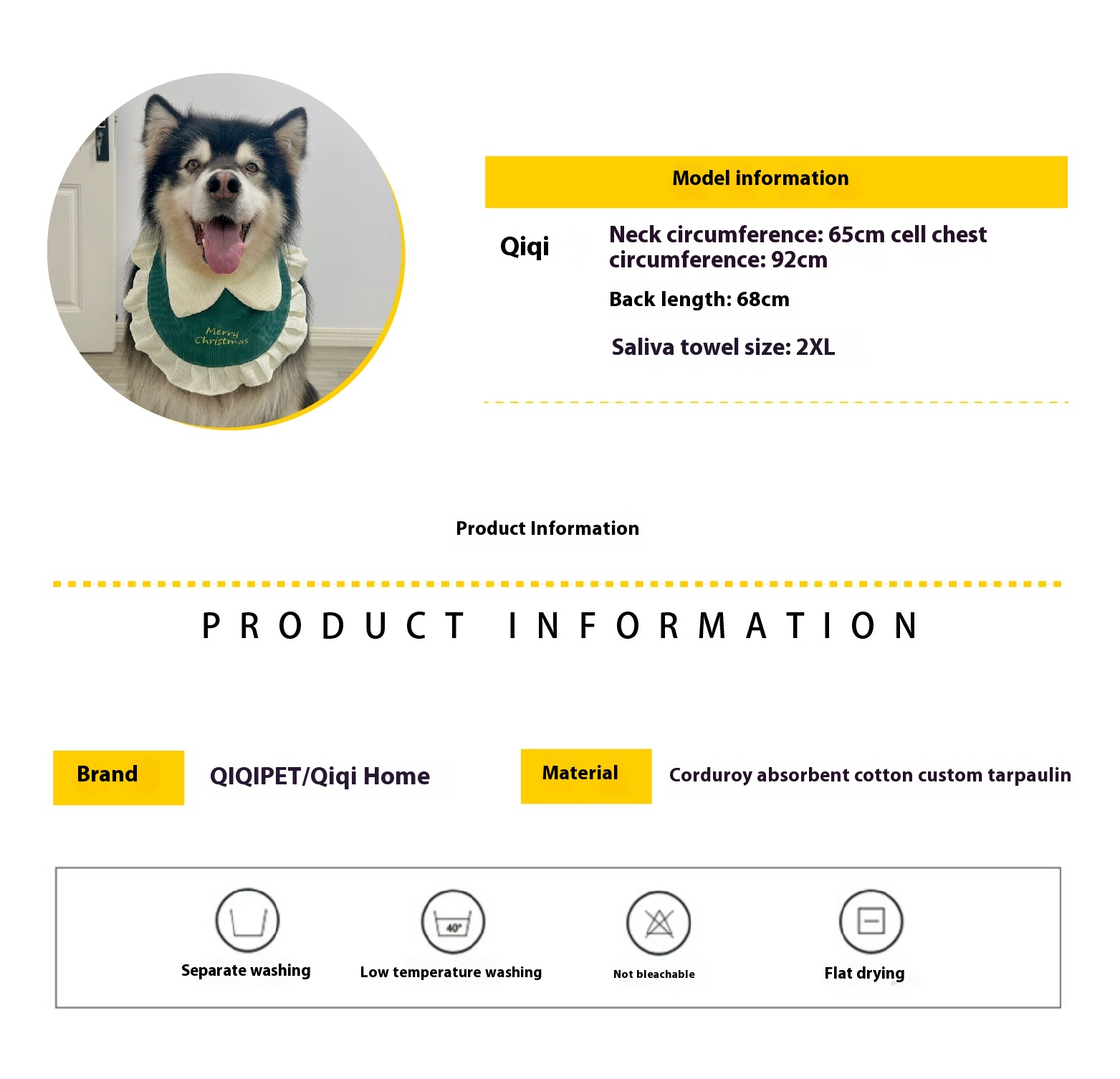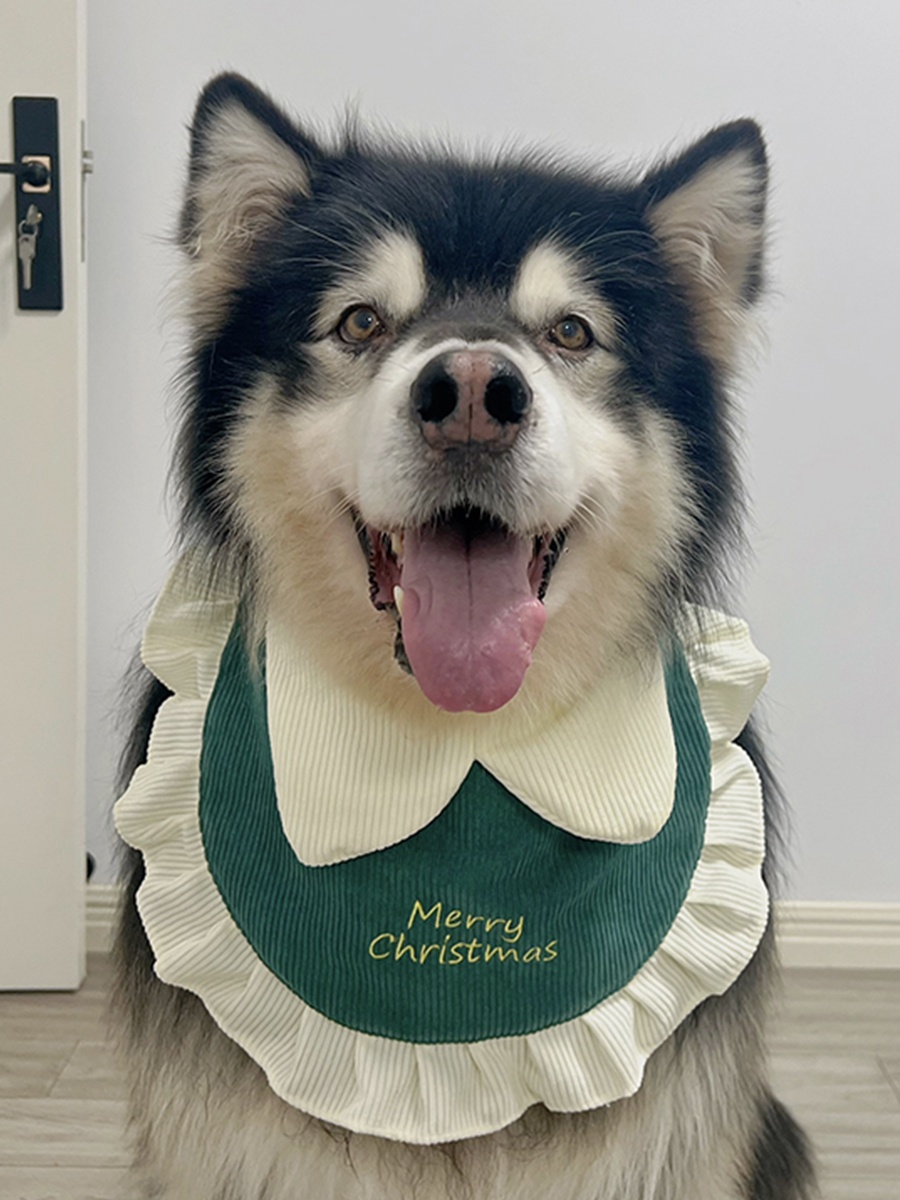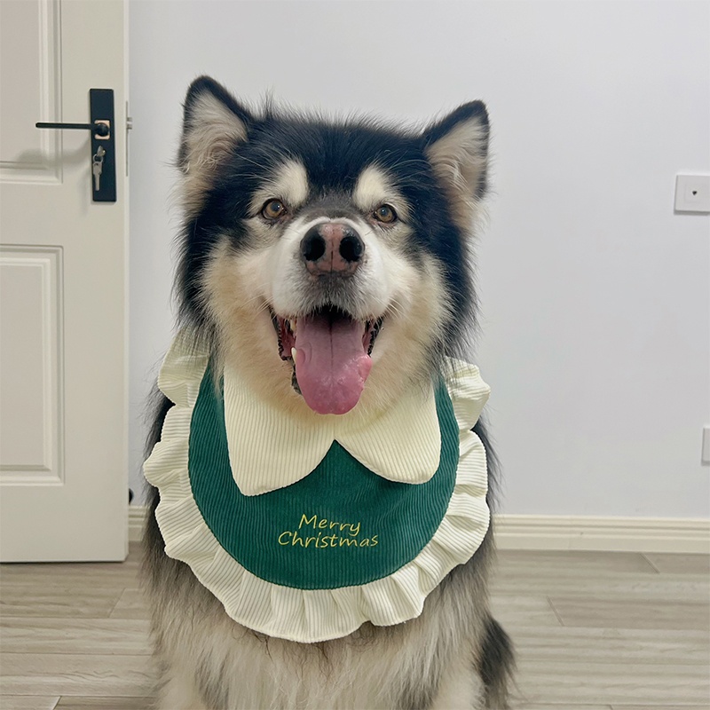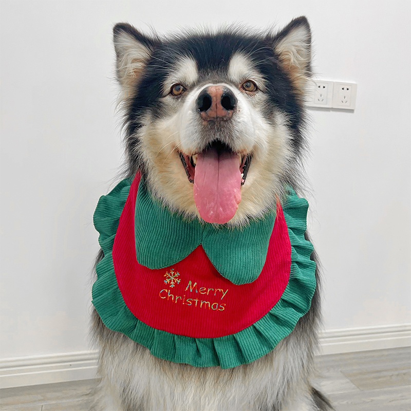 Free embroidery name Christmas style pet dog dog scarf large dog saliva towel bib Alaska Golden Retriever