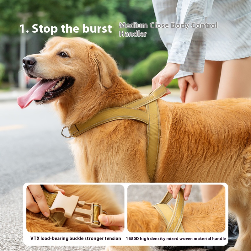 Golden retriever big dog out hand holding rope medium large dog explosion-proof tactical chest strap vest pet dog leash