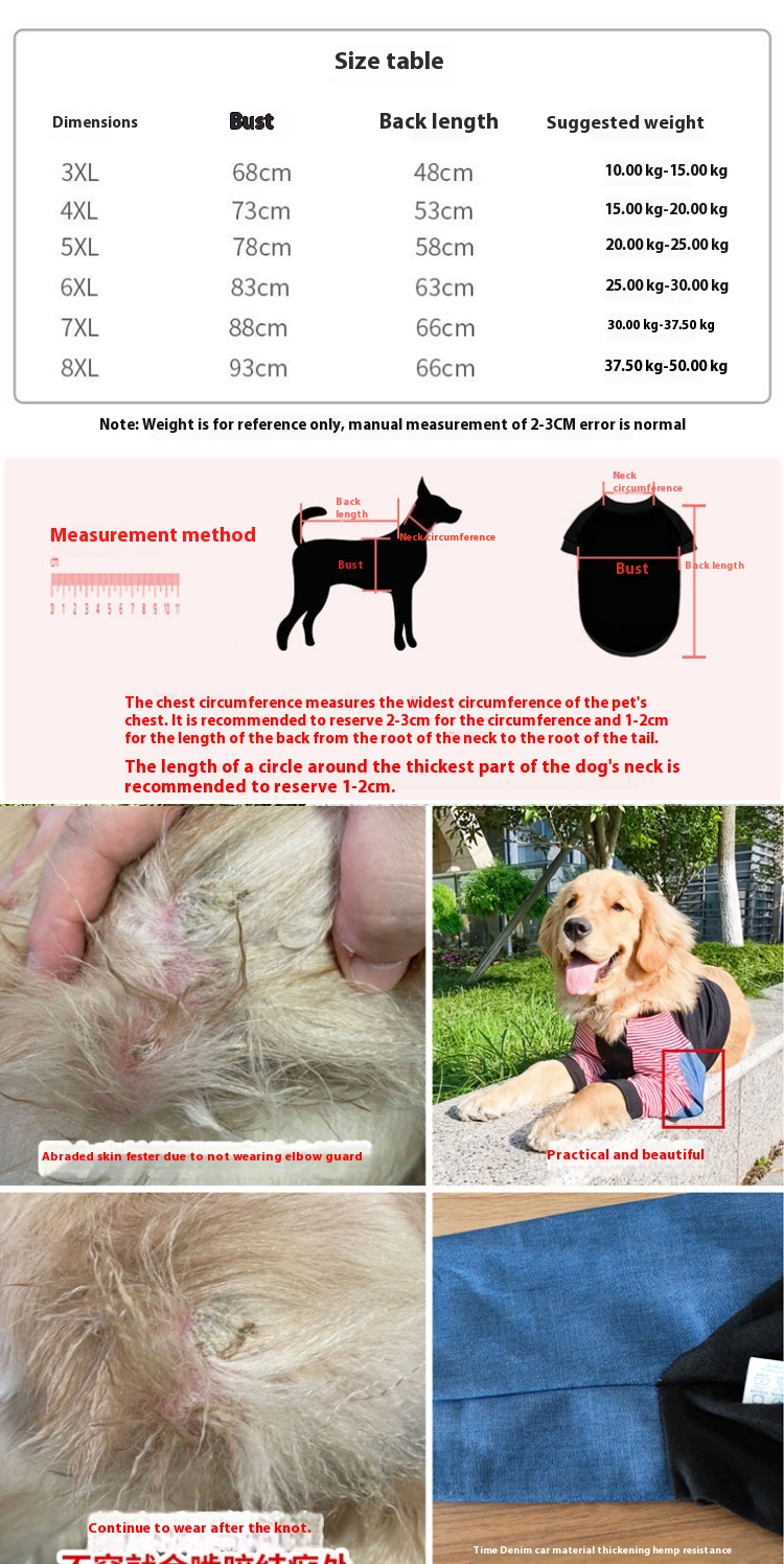 Golden retriever elbow kneecap clothes joint wear-resistant Labrador medium large dog dog summer thin anti-lint