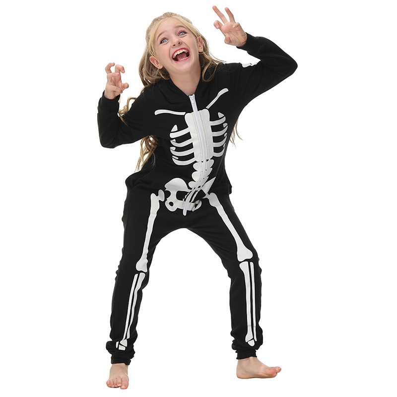 Halloween Children's skull suit performance wear boys and girls long sleeve trousers one-piece kindergarten funny ghost shape