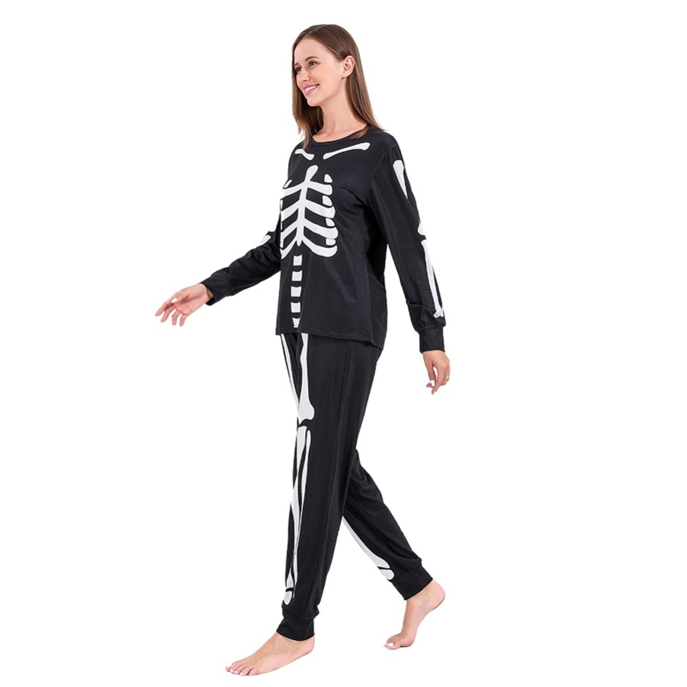 Halloween parent-child suit adult pajamas two-piece suit boy performance wear cartoon 3D skeleton skull horror Ghost clothes