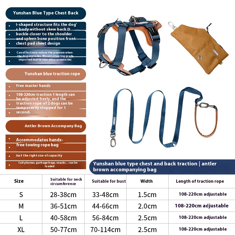 Hidream dog multi-functional explosion-proof multi-head double waist pull cross body hand holding rope I-shaped chest strap