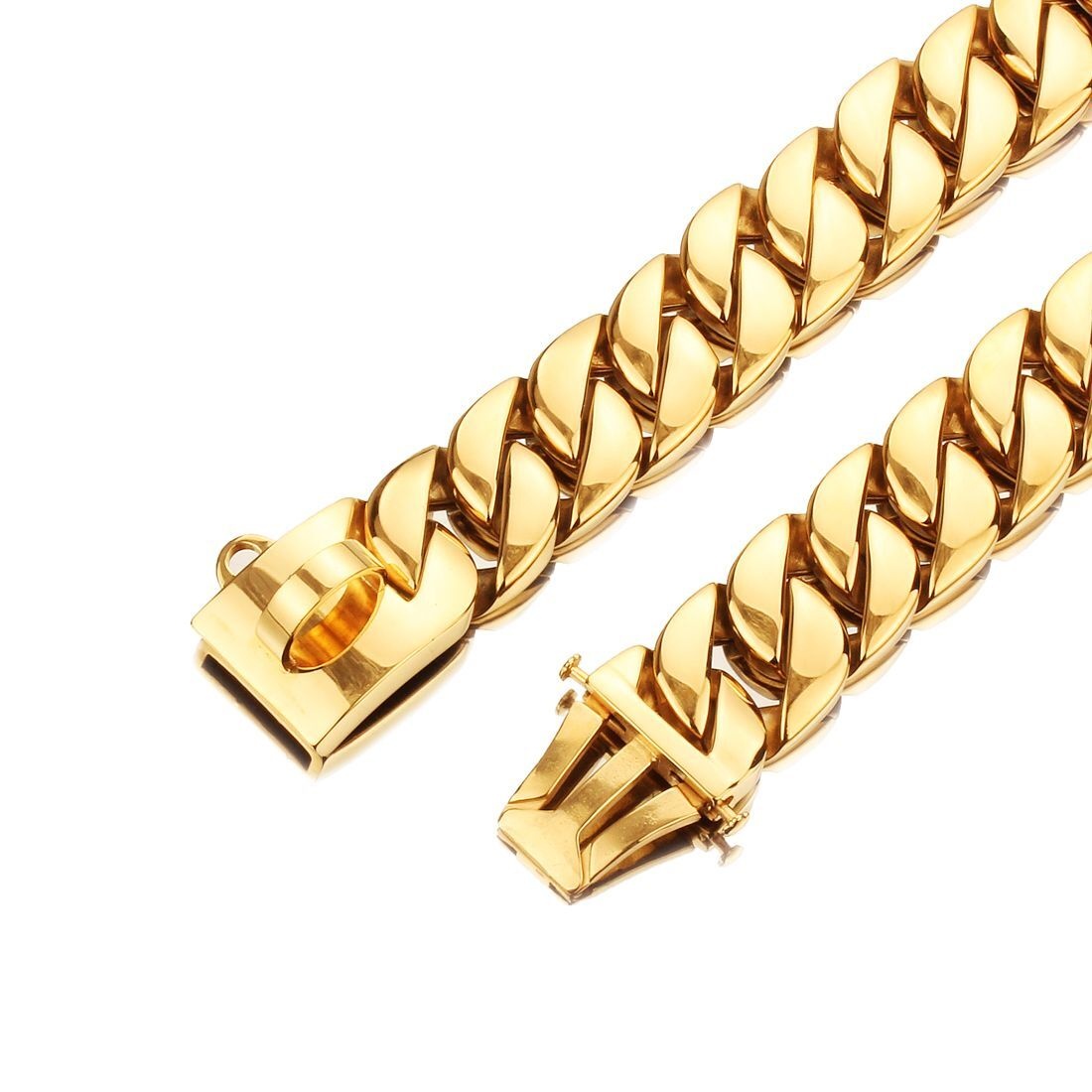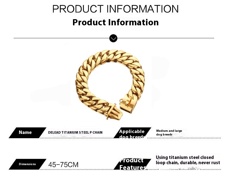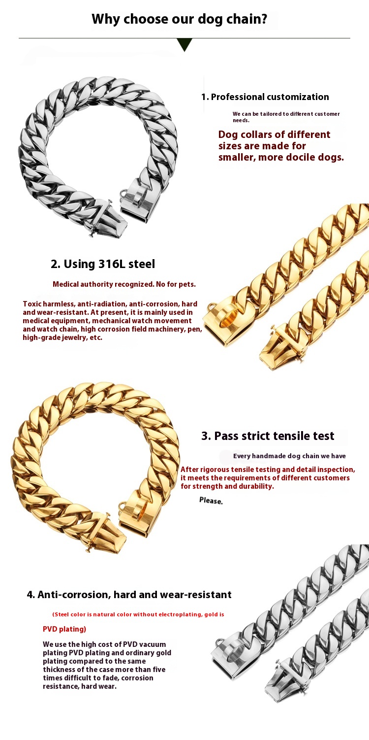 High-grade stainless steel dog leash medium large dog dog collar bite-proof protector traction chain tyrant gold Casero bully