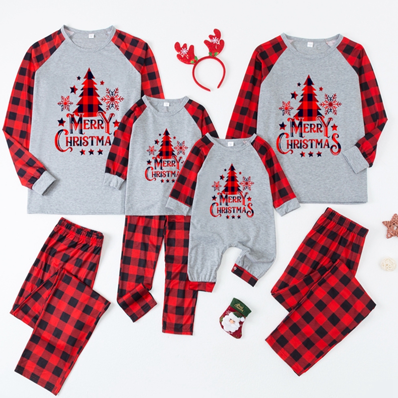 ins Christmas red plaid cartoon letter print father and son mother and daughter parent-child pajamas home wear two-piece set