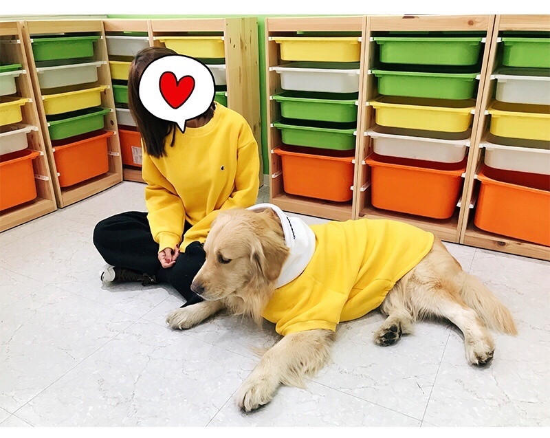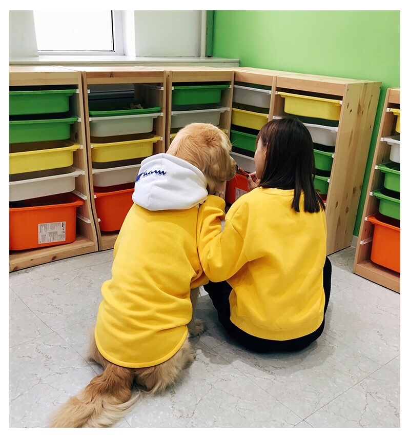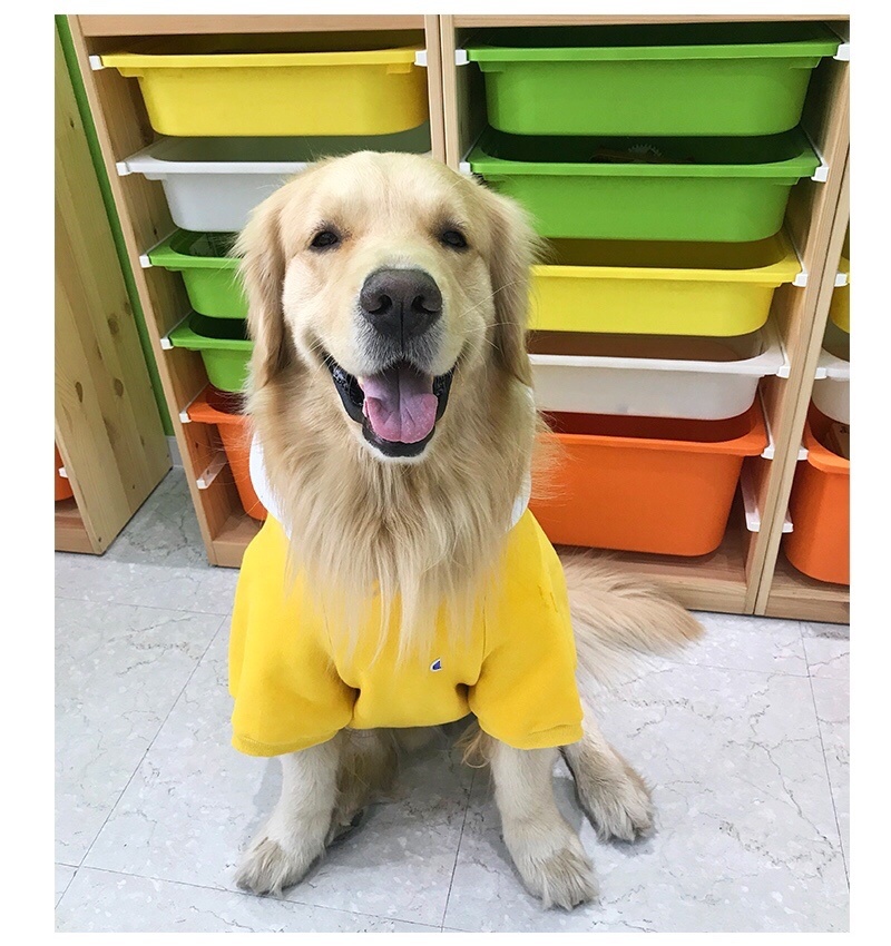 Internet celebrity ins pet parent-child outfit big dog clothes yellow sweater fashion brand large dog autumn and winter