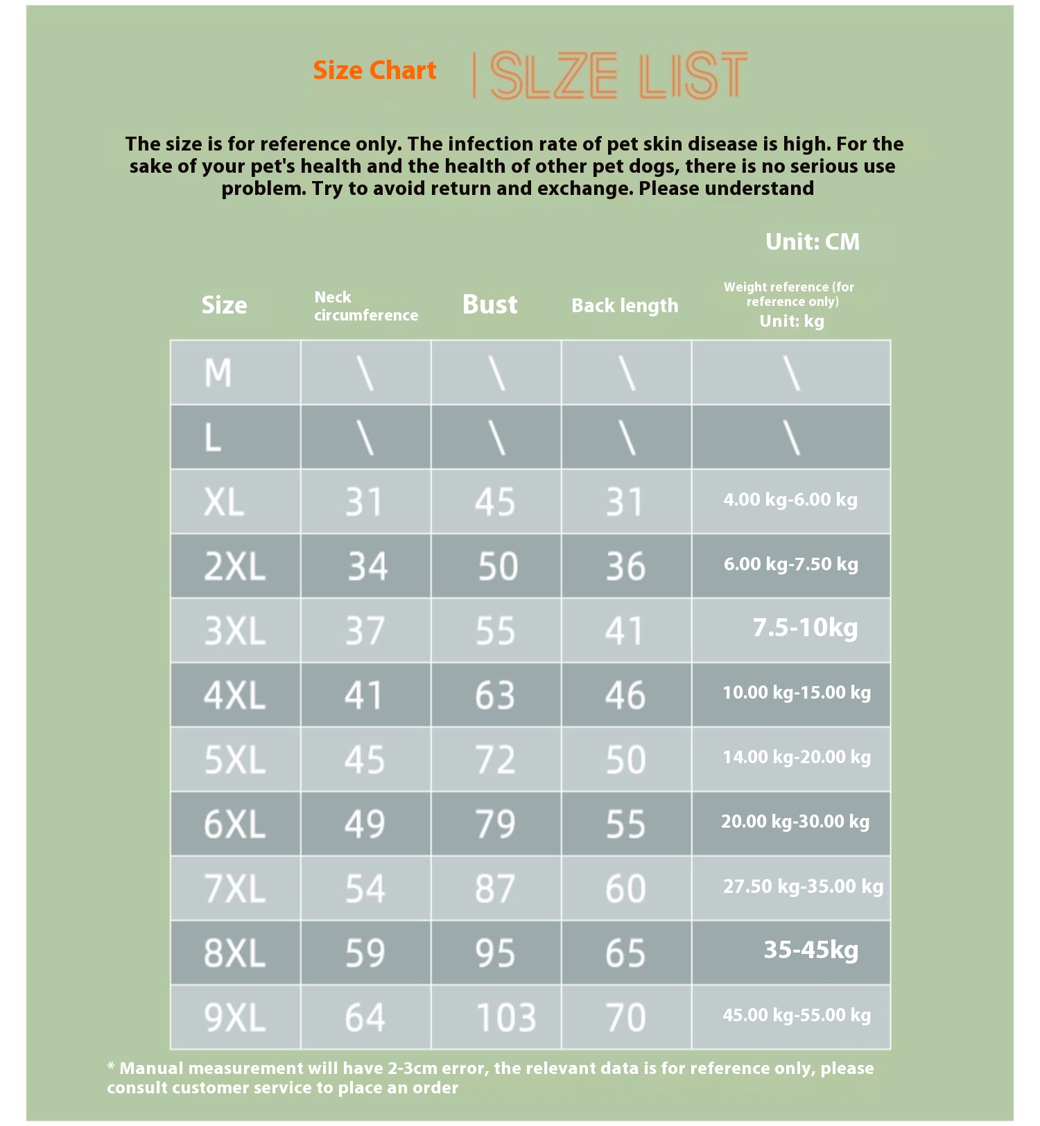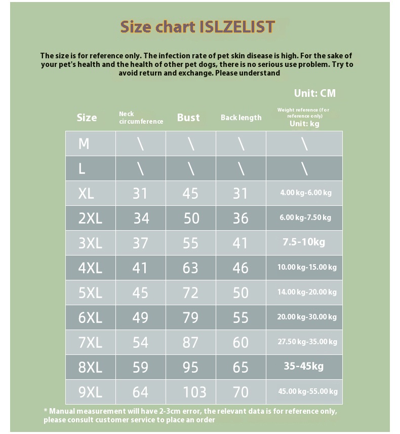 Size Chart micro-elastic fabric, chest circumference reserved loose point