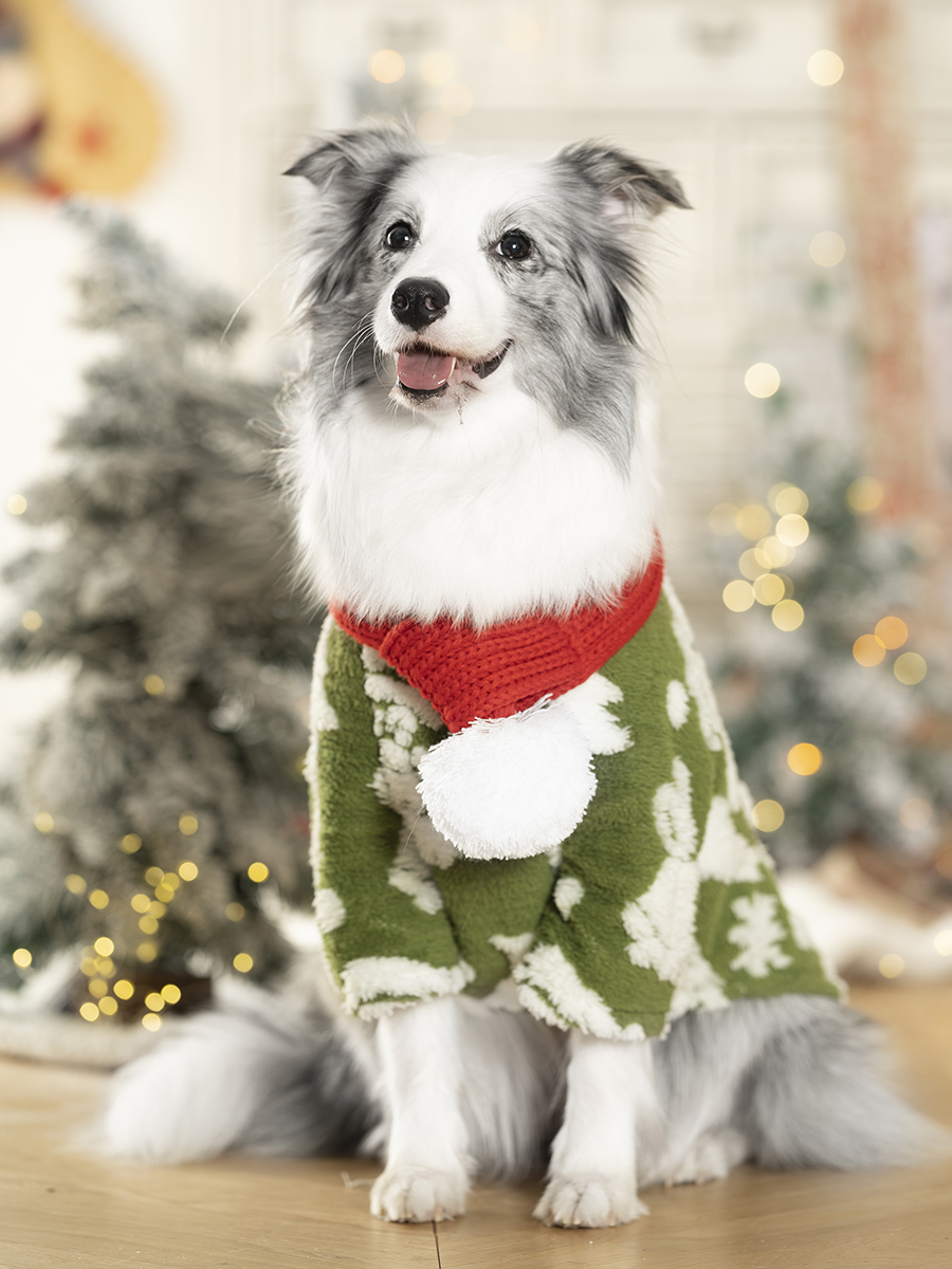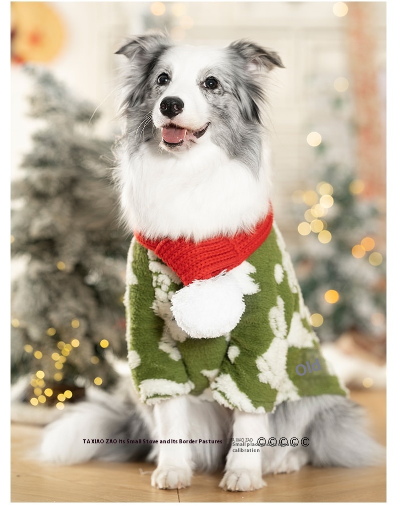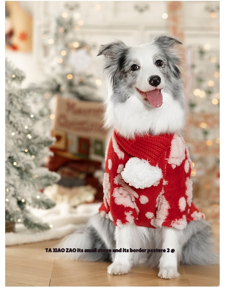 Its special snack dog New Year Christmas clothes large dog coral fleece autumn and winter warm festive red medium-sized dog scarf