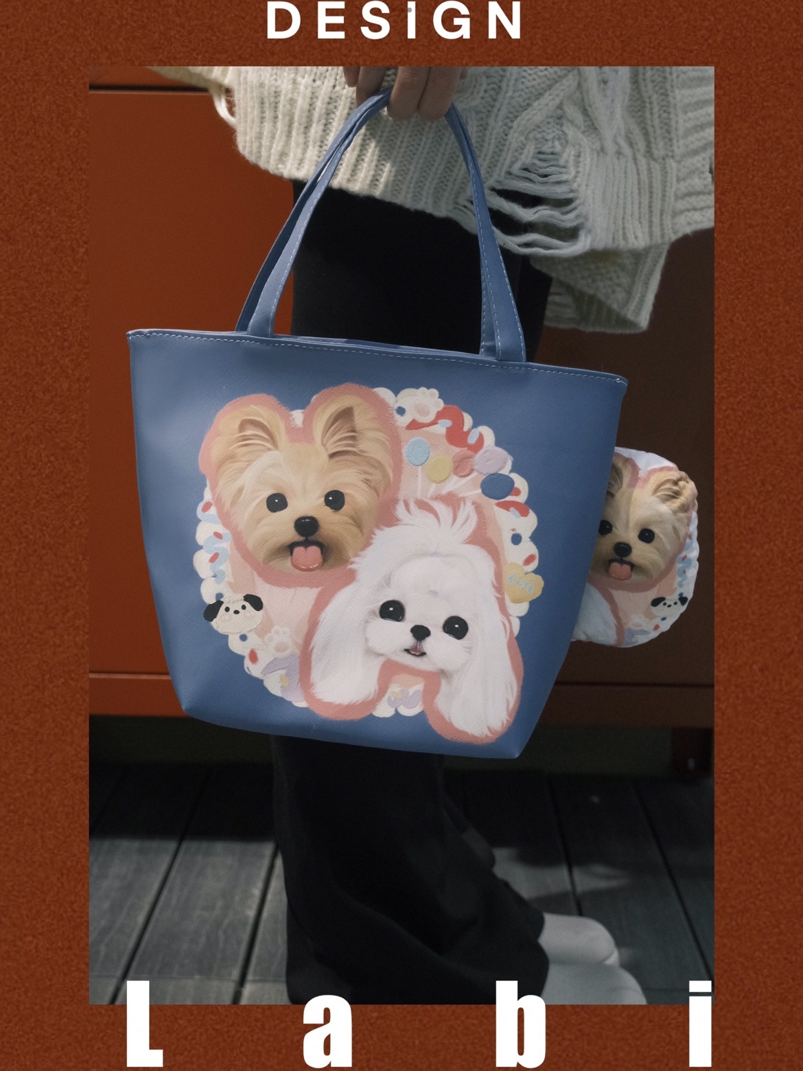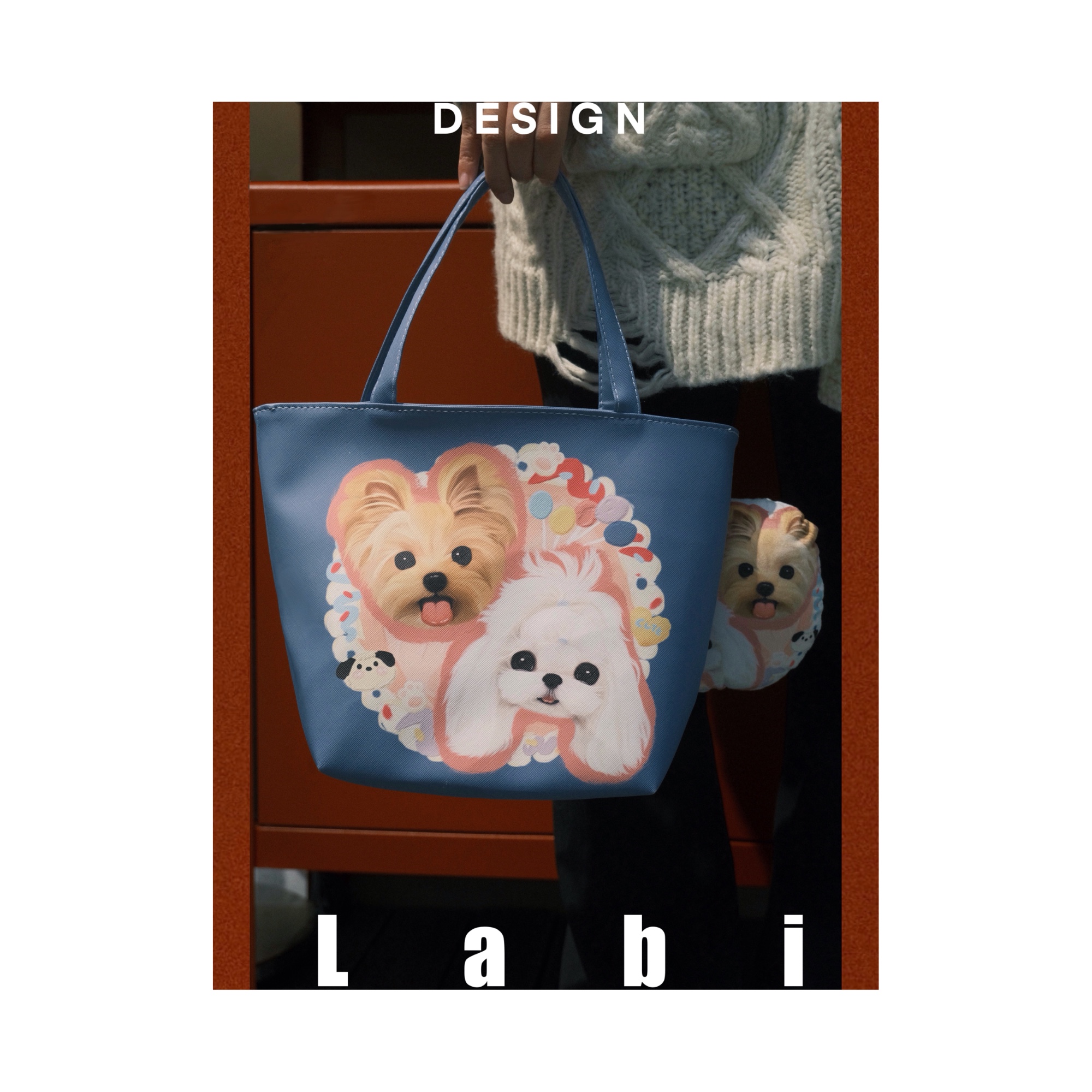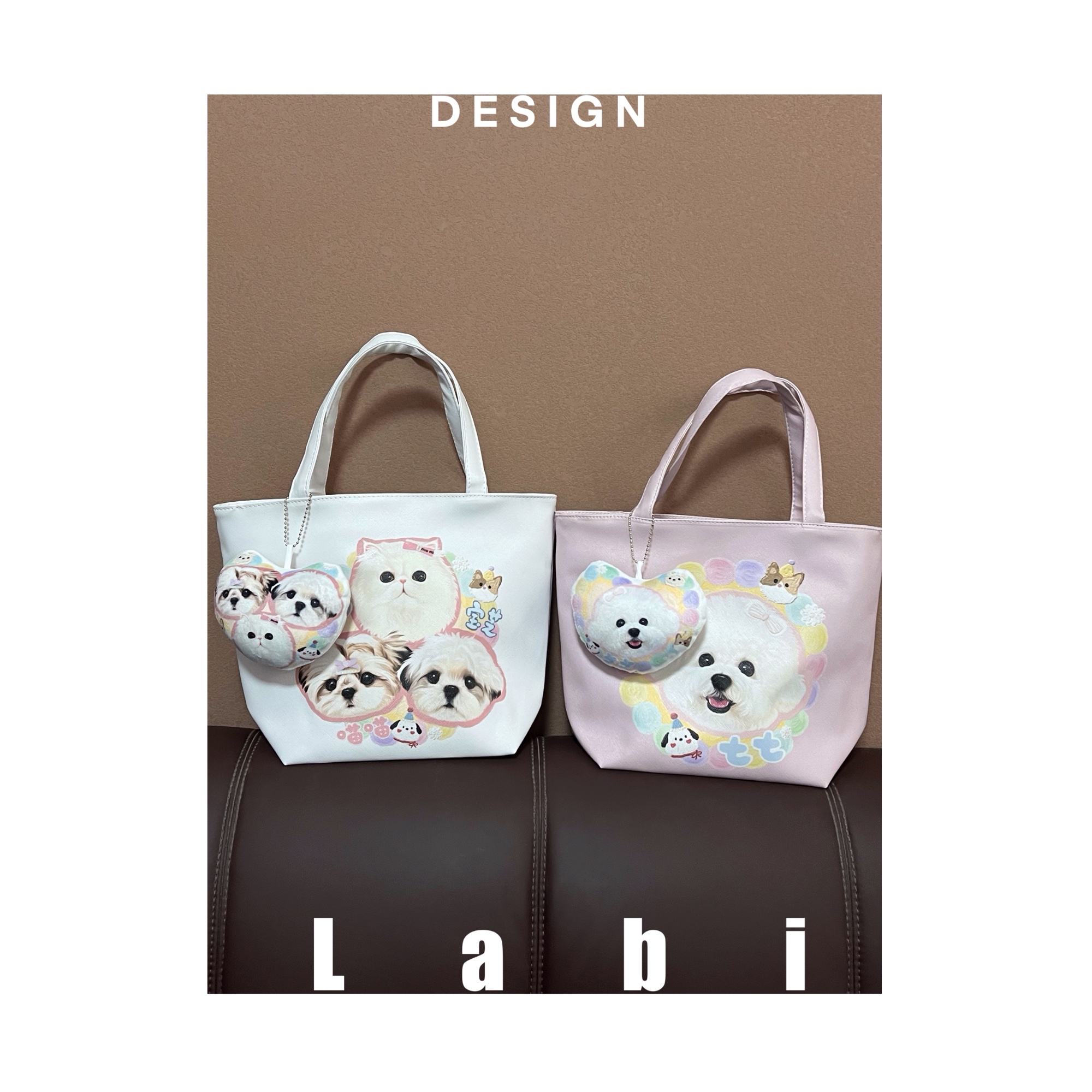 Labidesign pet cat and dog cute pet graphic customization hand-painted diy small Lether bag walking tote handbag hand carrying