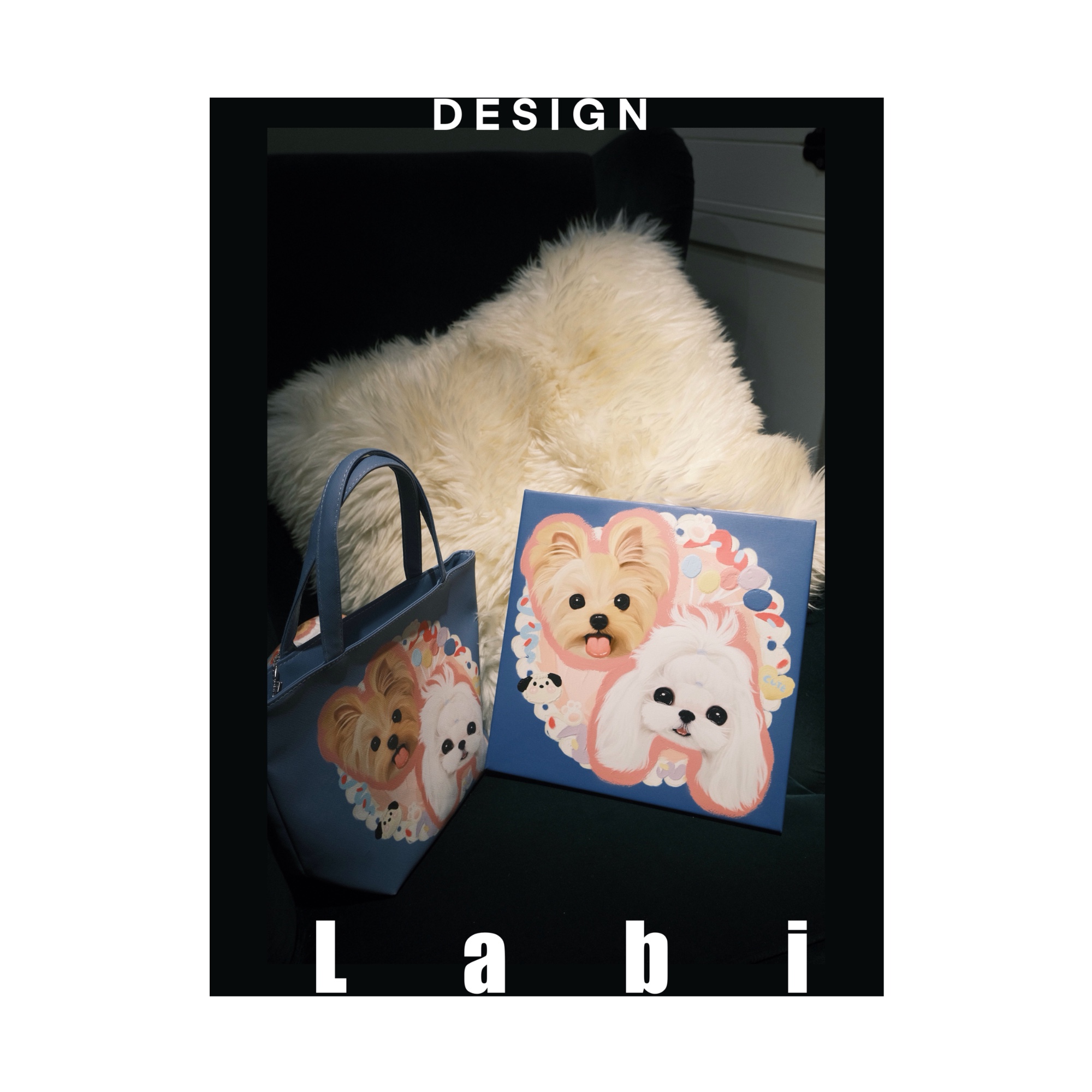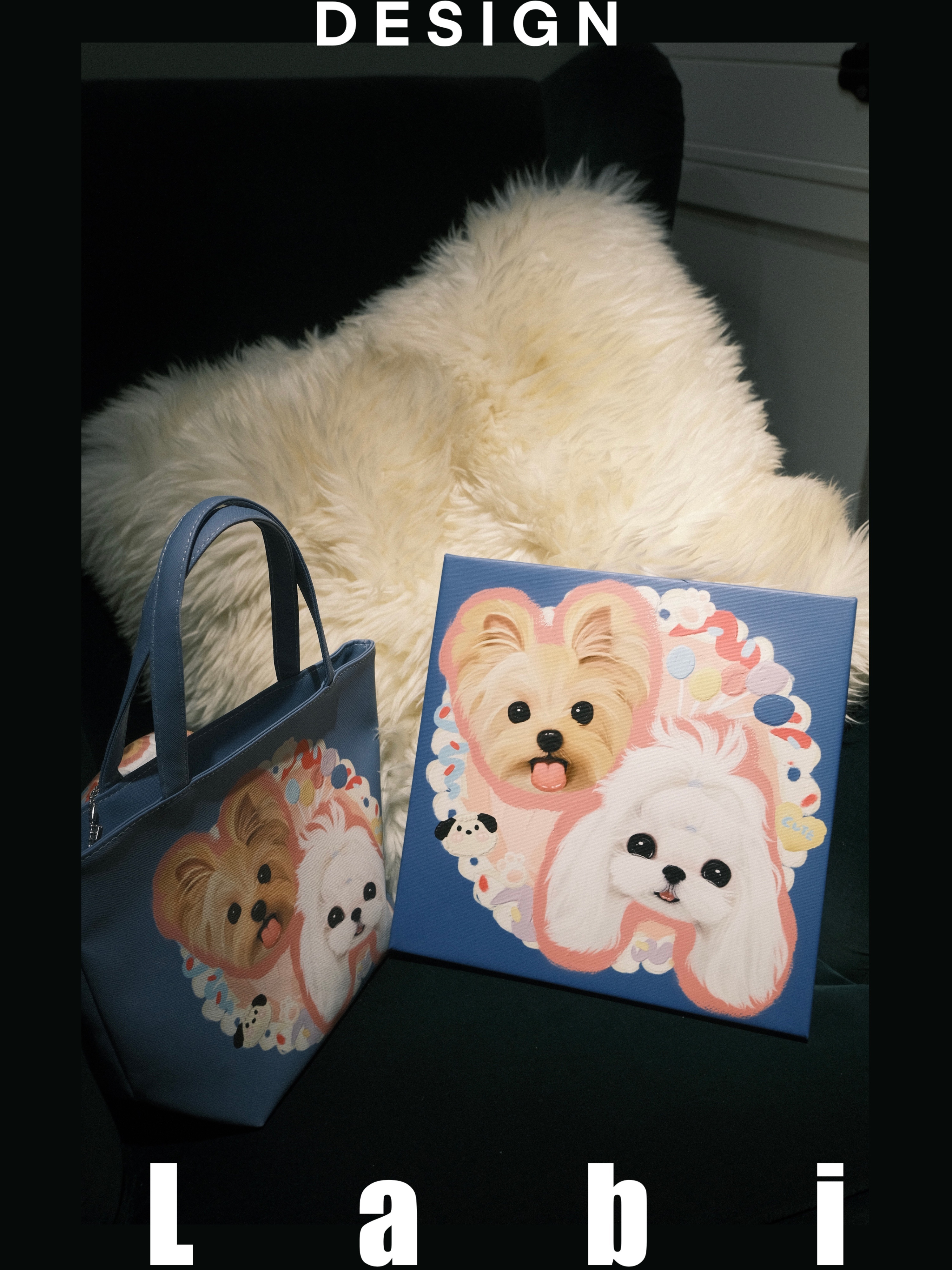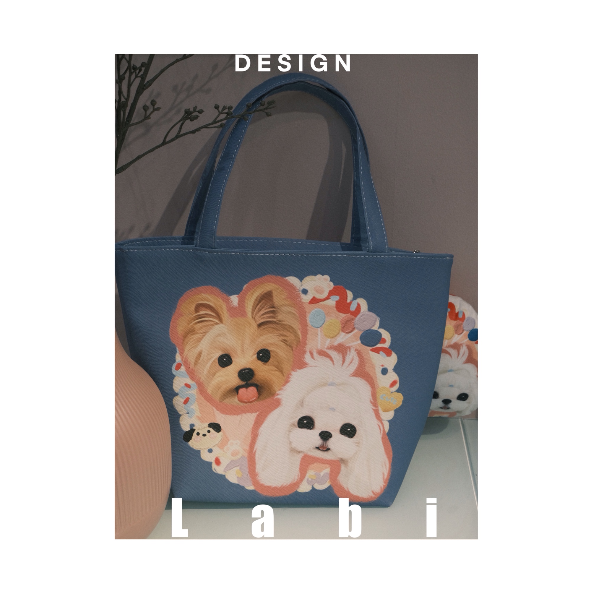 Labidesign pet cat and dog cute pet graphic customization hand-painted diy small Lether bag walking tote handbag hand carrying