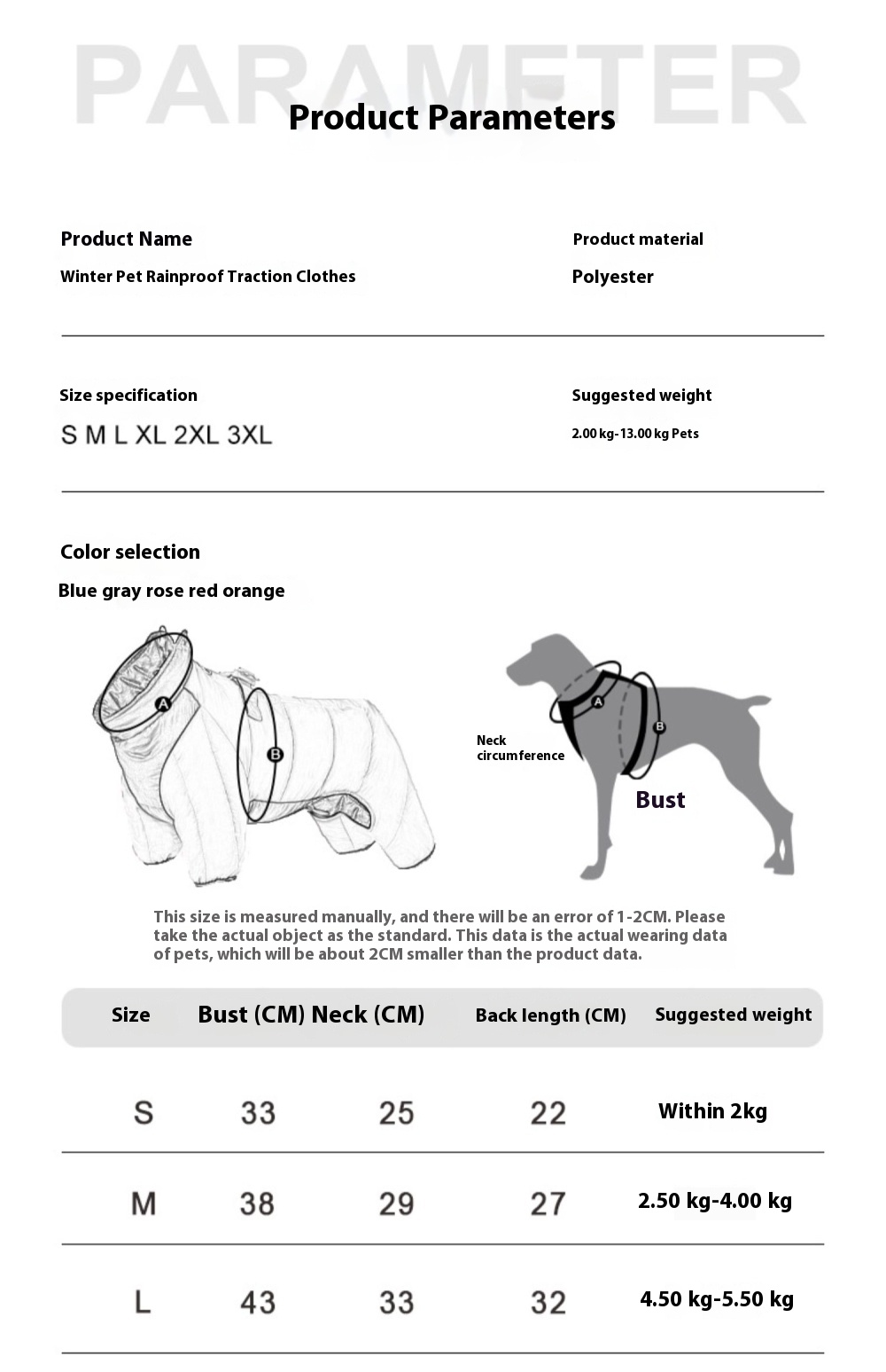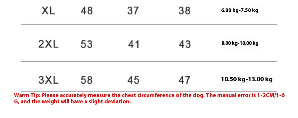2XL [chest circumference 53cm] recommended 8.00 kg-10.00 kg