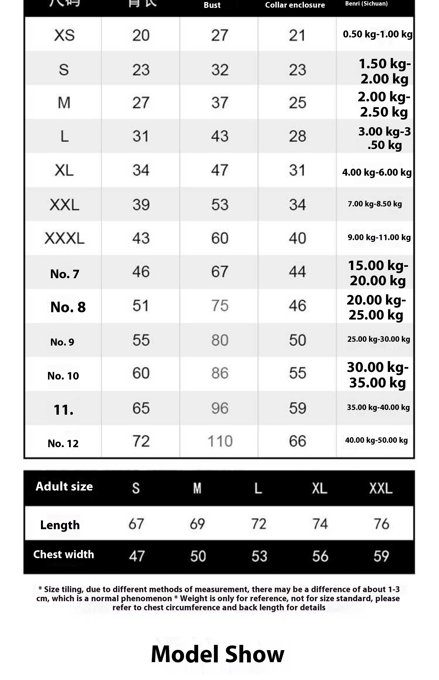 No.9: chest circumference about 80cm (22.50 kg-27.50 kg