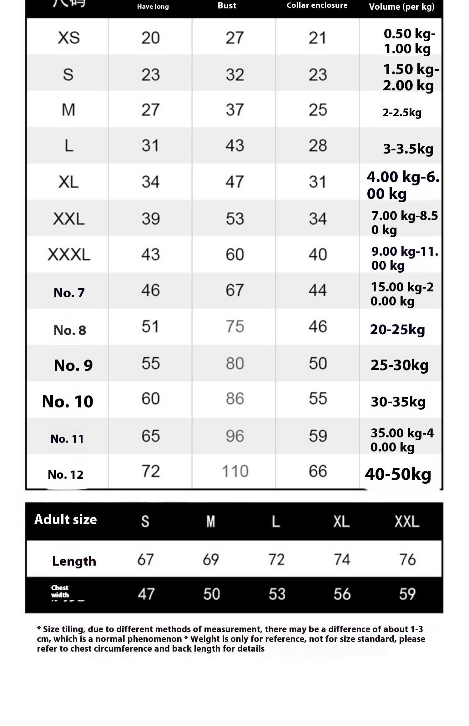 No.9: chest circumference about 80cm (22.50 kg-27.50 kg