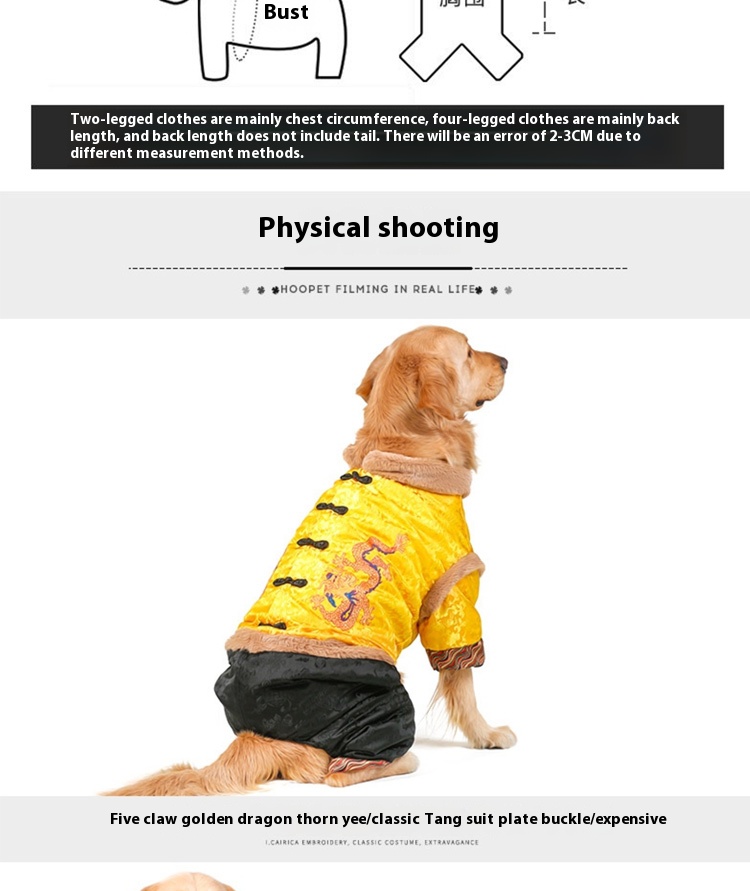 Large dog Tang suit pet New Year dress dog festive cotton-padded coat golden retriever winter clothing warm Chinese New Year clothes