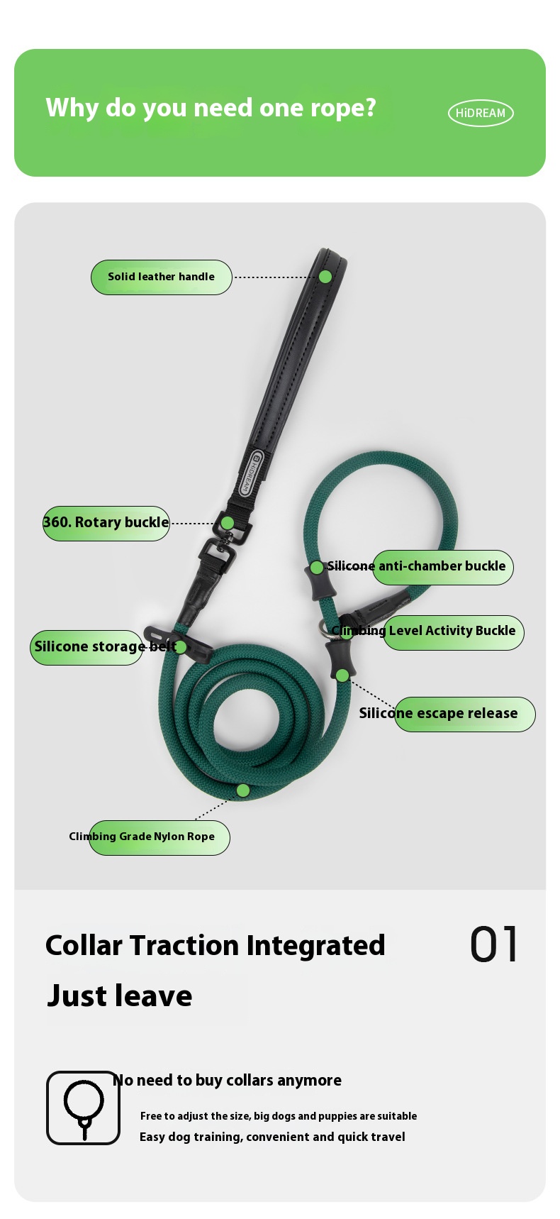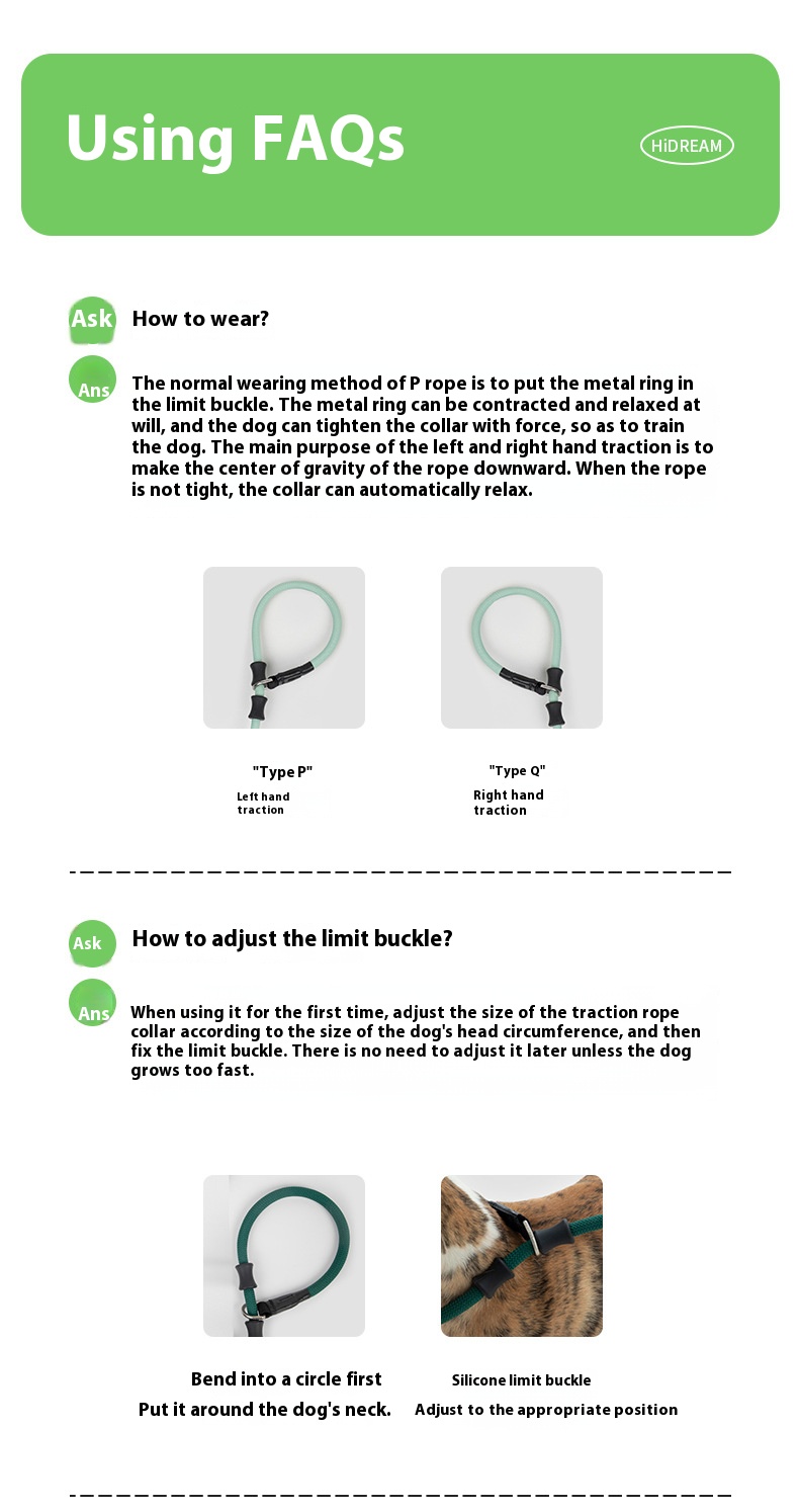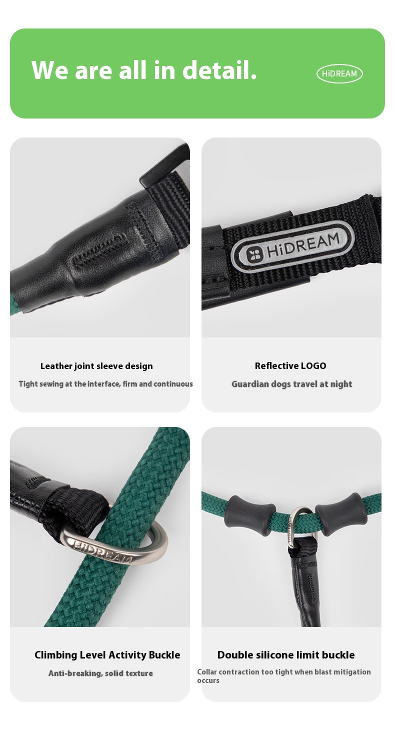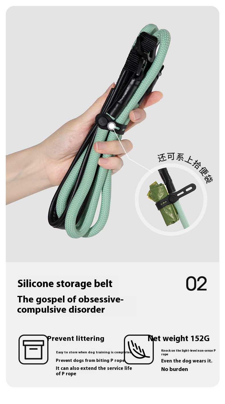 Leather handle integrated P rope dog out hand holding rope large dog explosion-proof training pet bold