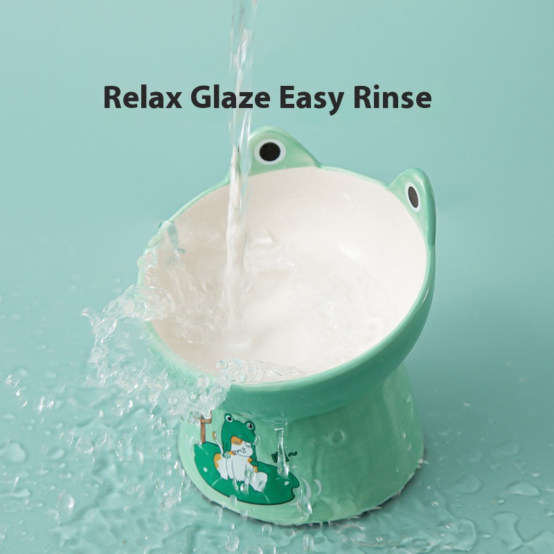 Little Frog animal shape oblique cat ceramic tall bowl dog feeding bowl cat bowl dog bowl pet dog supplies