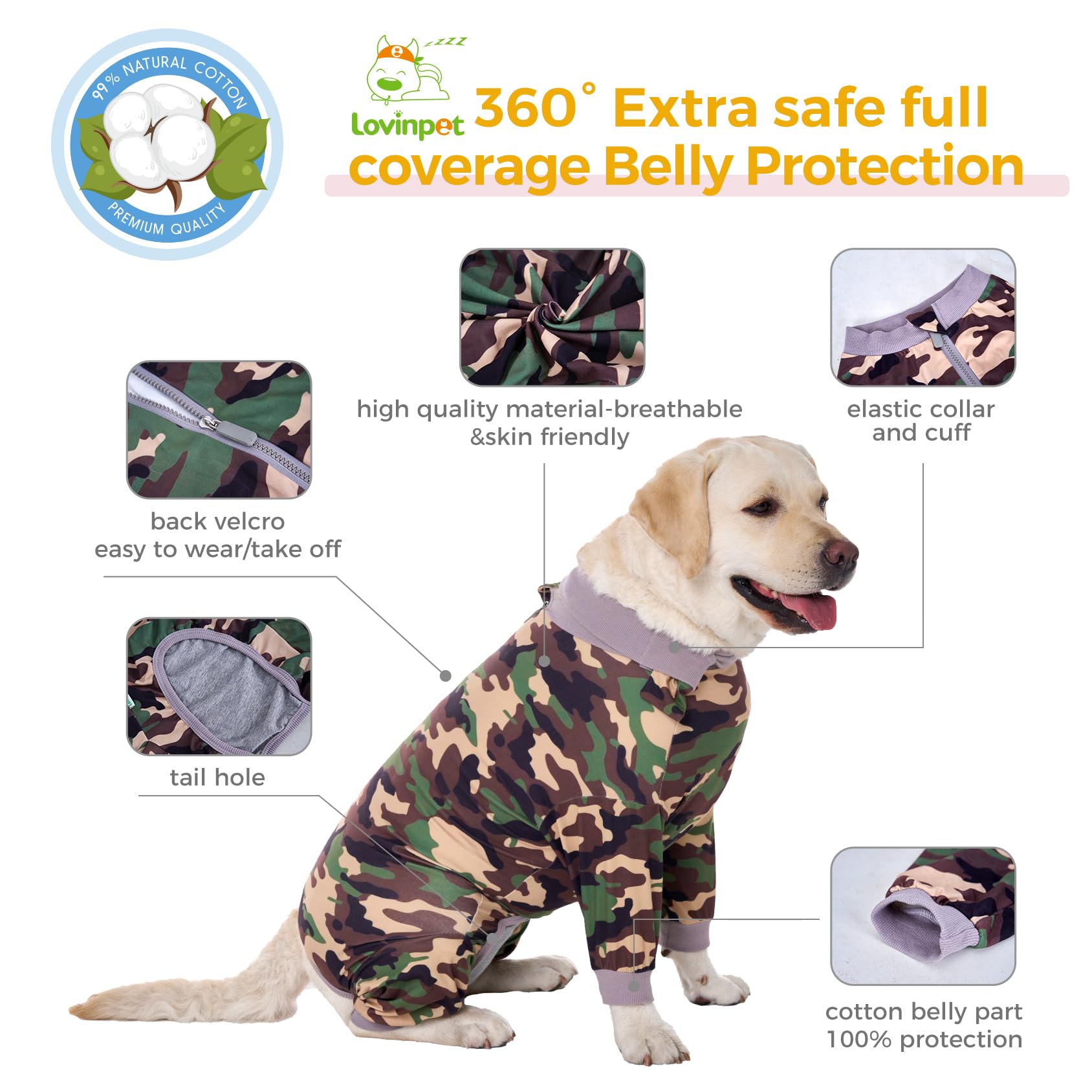 LovinPet Recovery Suit for Large Dogs After Surgery, Abdominal Wounds Protector Spay Recovery Suit for Dogs, E-Collar Alternative, Anti-Licking Dog Recovery Snugly Suit, Full Body for Shedding