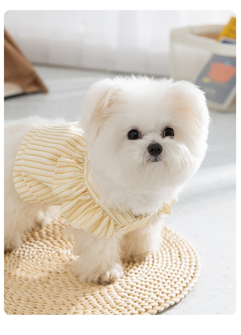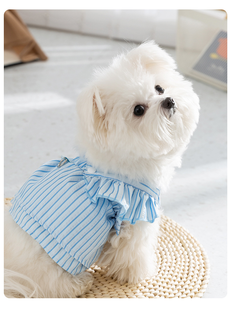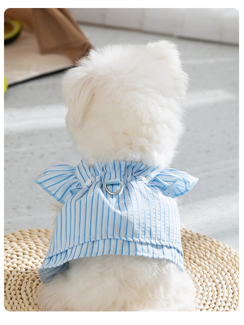 This LovinPet striped dog dress features flounced sleeves and a comfortable fit, perfect for small dogs. Ideal for outdoor fashion during spring and summer, this dress combines style with functionality.