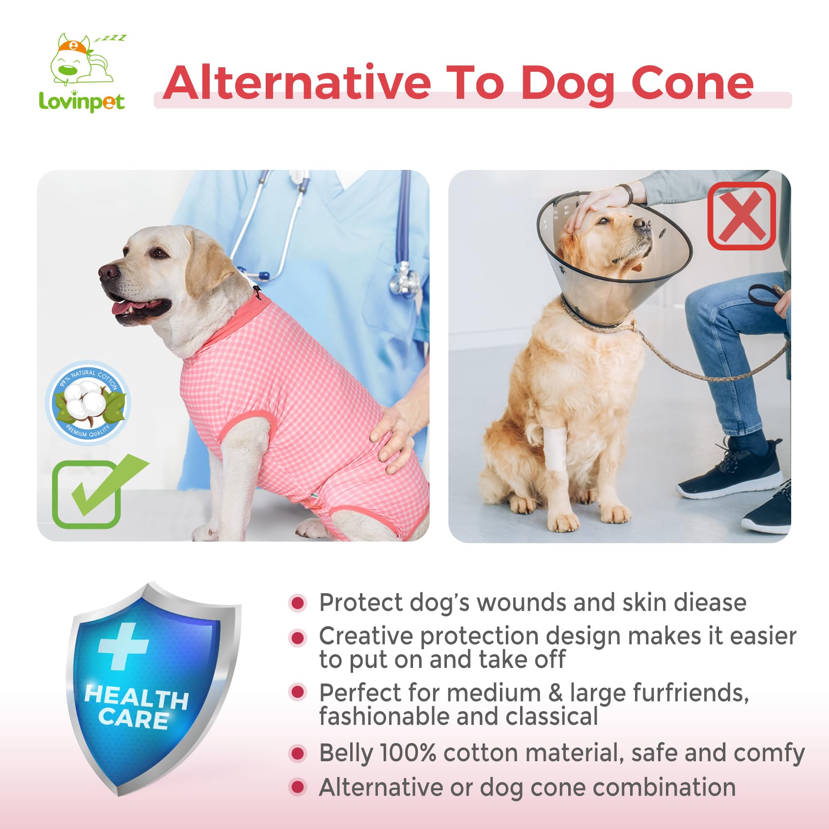 LovinPet Surgical Suit for Dogs Female - Recovery Suit for Dogs Female & Male Anti-Licking Protection Full Body Coverage for Anti-Shedding