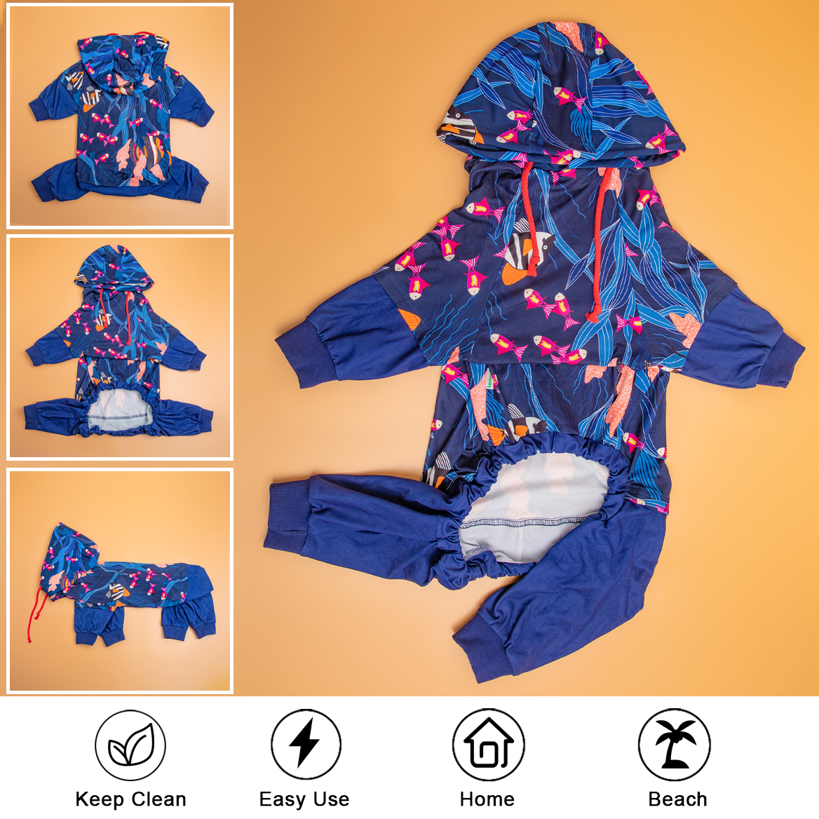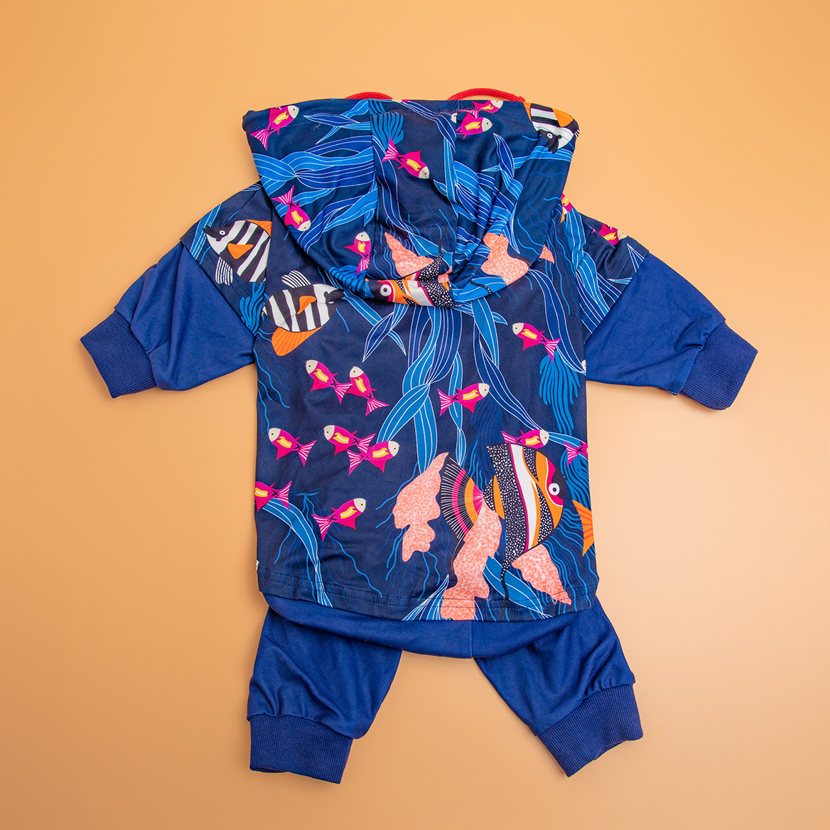 This pjs design with hoodie and fishtopia seascape navy prints, special designed with unique stitching like two-piece design锟斤拷your dog will definitely    become particularly fashionable when wearing it.