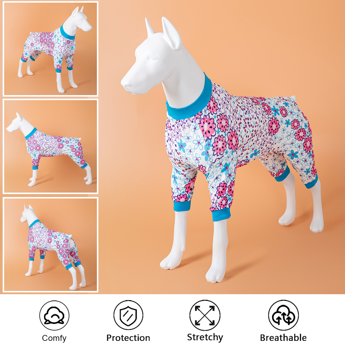 Unique crew neck with pretty in floral multi prints design, The fabric is made by high-quality, dog-friendly materials that are soft and comfortable, warm, but not stifling hot and do not cause skin discomfort like other Polyester, wool, nylon, denim