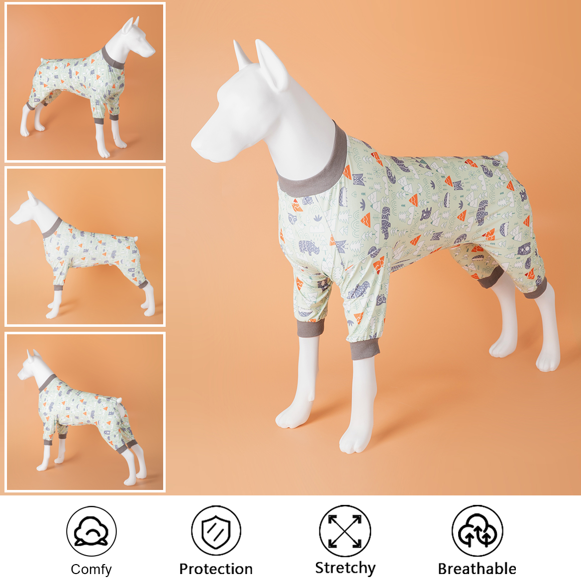 • It can protect the dog' s privacy. For example, If the wound is obvious after surgery, or when the skin is sensitive, wearing cute dog pajamas can avoid embarrassment and let our dog regain self-confidence faster