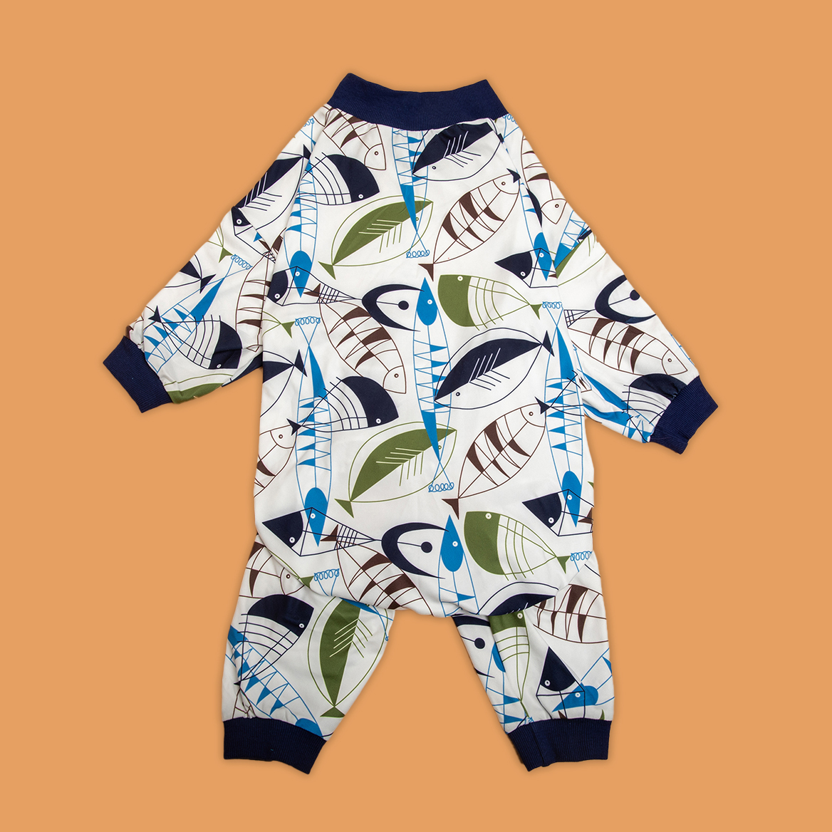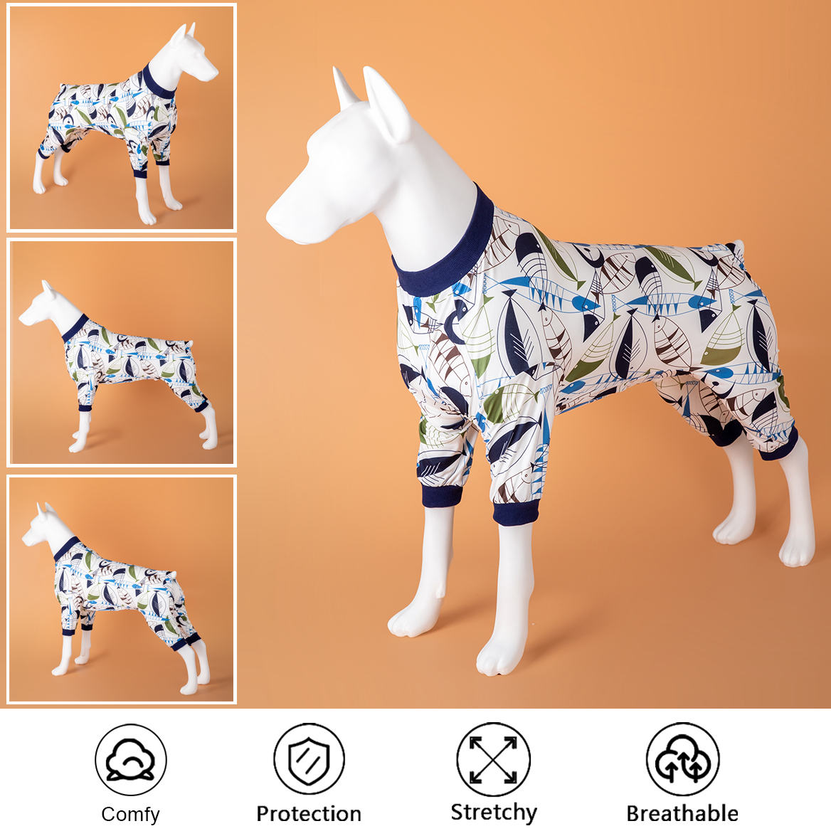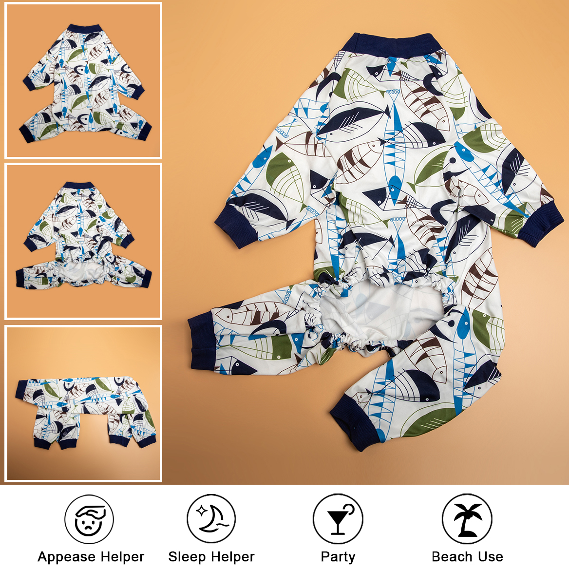 • It can protect the dog' s privacy. For example, If the wound is obvious after surgery, or when the skin is sensitive, wearing cute dog pajamas can avoid embarrassment and let our dog regain self-confidence faster