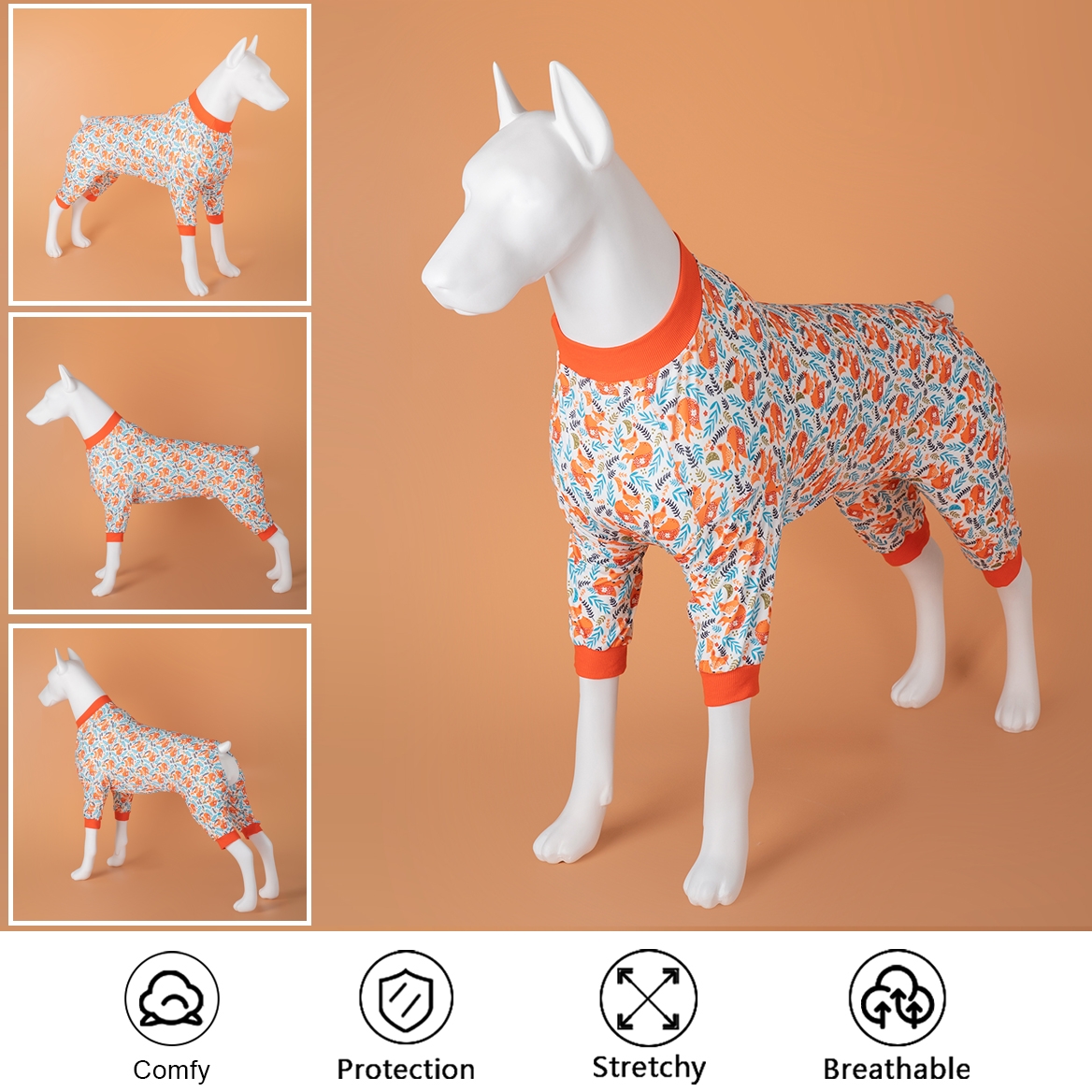 • It can protect the dog' s privacy. For example, If the wound is obvious after surgery, or when the skin is sensitive, wearing cute dog pajamas can avoid embarrassment and let our dog regain self-confidence faster