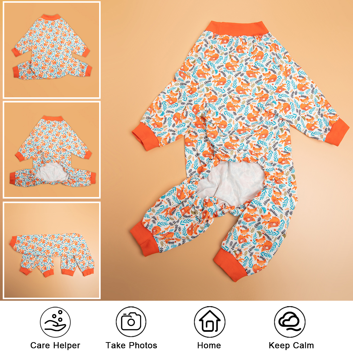 • Our jumpsuit for dogs are very light. It can not only be used as a dog Pajamas calming to use for sleeping, but also as a replacement for dog Anxiety calming shirt, which can reduce the sense of restraint to our furry baby.