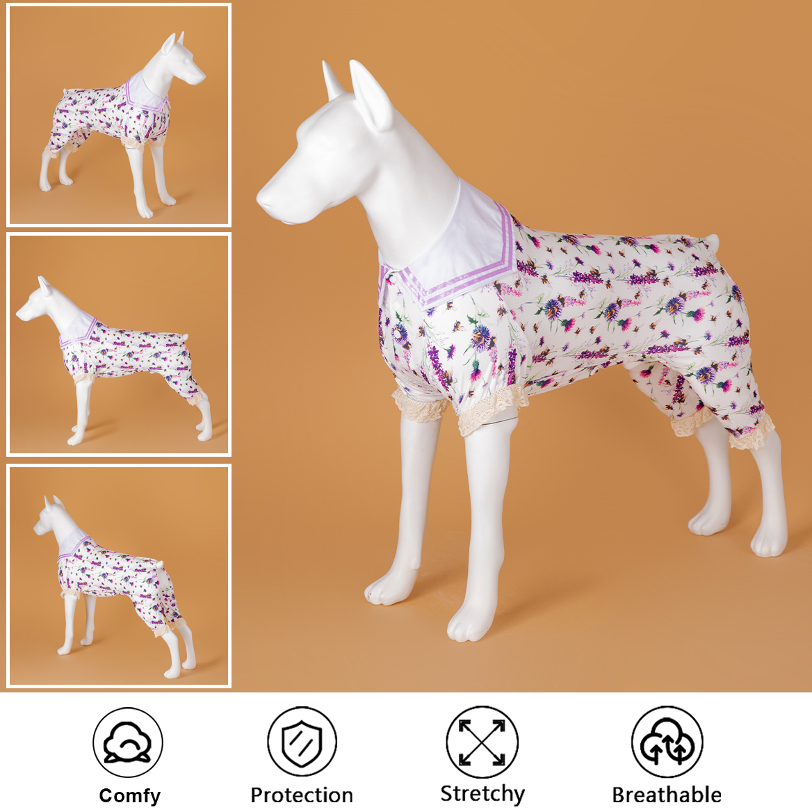 Lovinpet dog pjs can be used in all seasons, It is breathable and has the function of UV protection, soft, skin-friendly, so it can be worn as dog pajamas and outerwear in summer, and can also be worn as a bottoming shirt in dog coats or dog dresses.