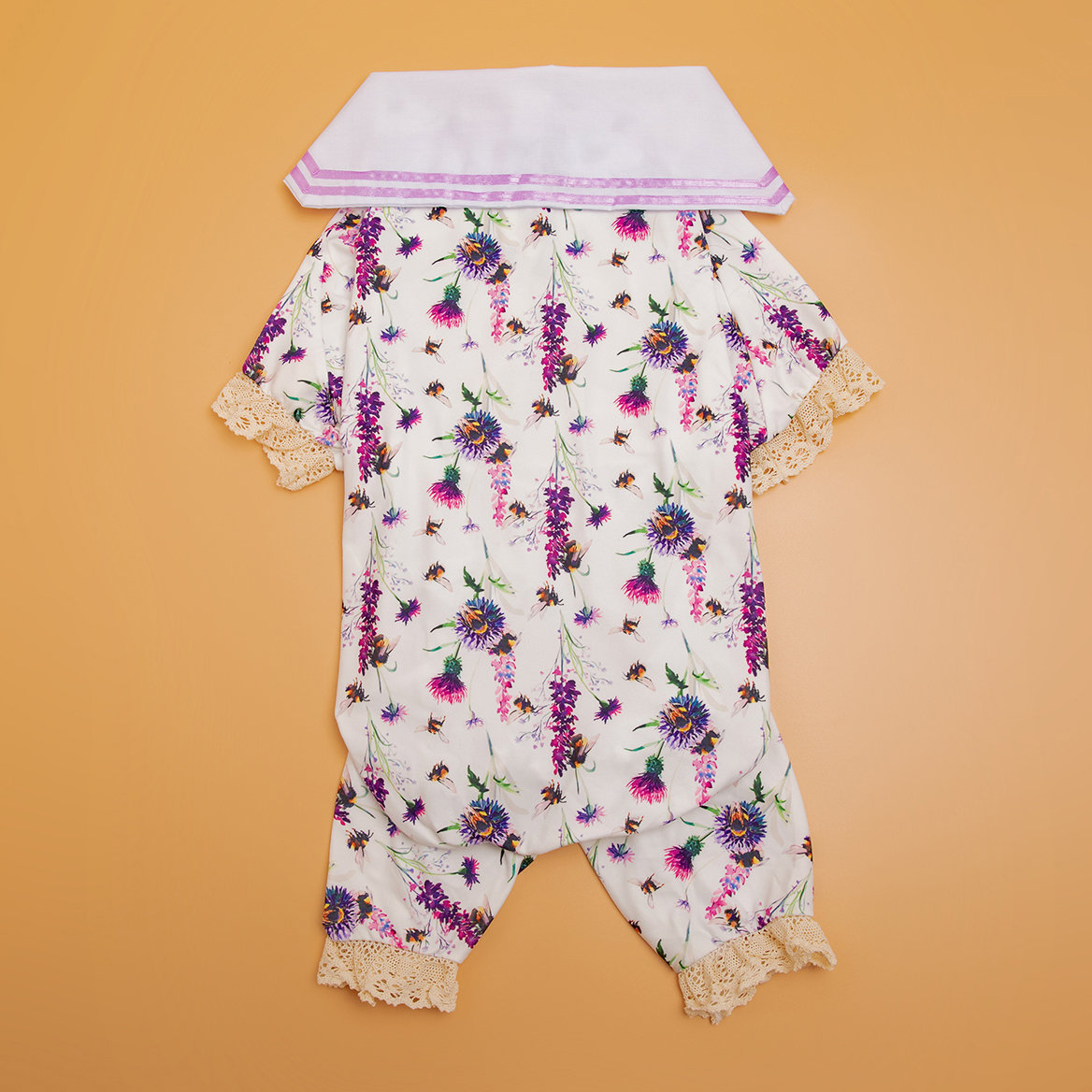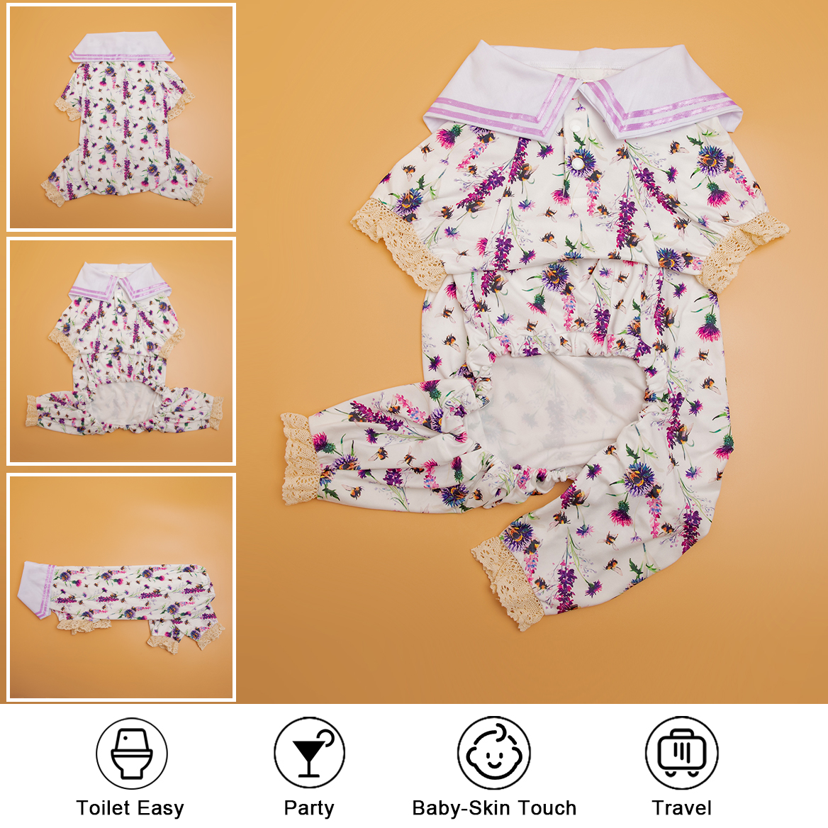 Unique crew neck with two Legged cuddle bee garden amethyst prints design, Two-leg design will make it easier to put on and take off, and dogs can pee freely without taking off any clothes. The fabric is made by high-quality, dog-friendly materials that are soft and comfortable, warm, but not stifling hot, dogs who like no sense of restraint must like this two-leg design pajamas.