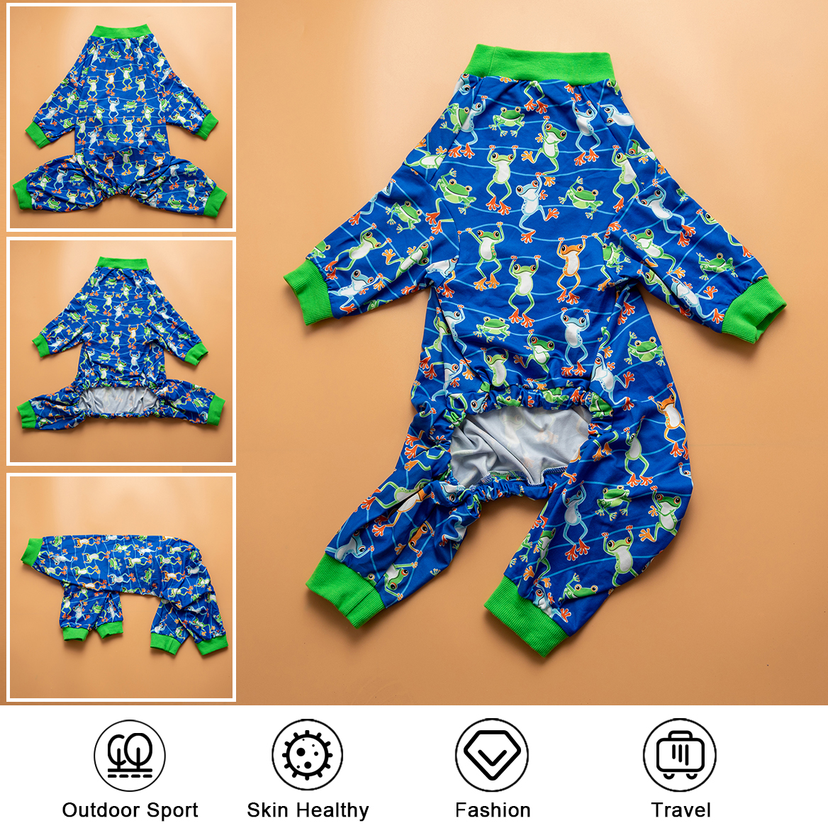 • It can protect the dog' s privacy. For example, If the wound is obvious after surgery, or when the skin is sensitive, wearing cute dog pajamas can avoid embarrassment and let our dog regain self-confidence faster