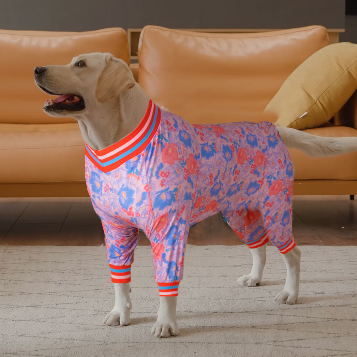 It can protect the dog' s privacy. for example, If the wound is obvious after surgery, or when the skin is sensitive, wearing cute large dog onesies can avoid embarrassment and let our dog regain self-confidence faster