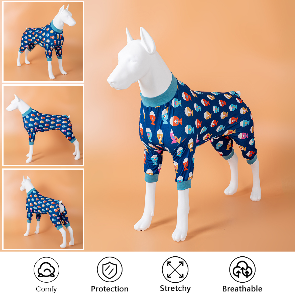 • dog onesie pajamas tailored for big dog breeds,such as pitbull/bulldog/beagle/large pinscher/labrador retriever/german spaniel and so on.