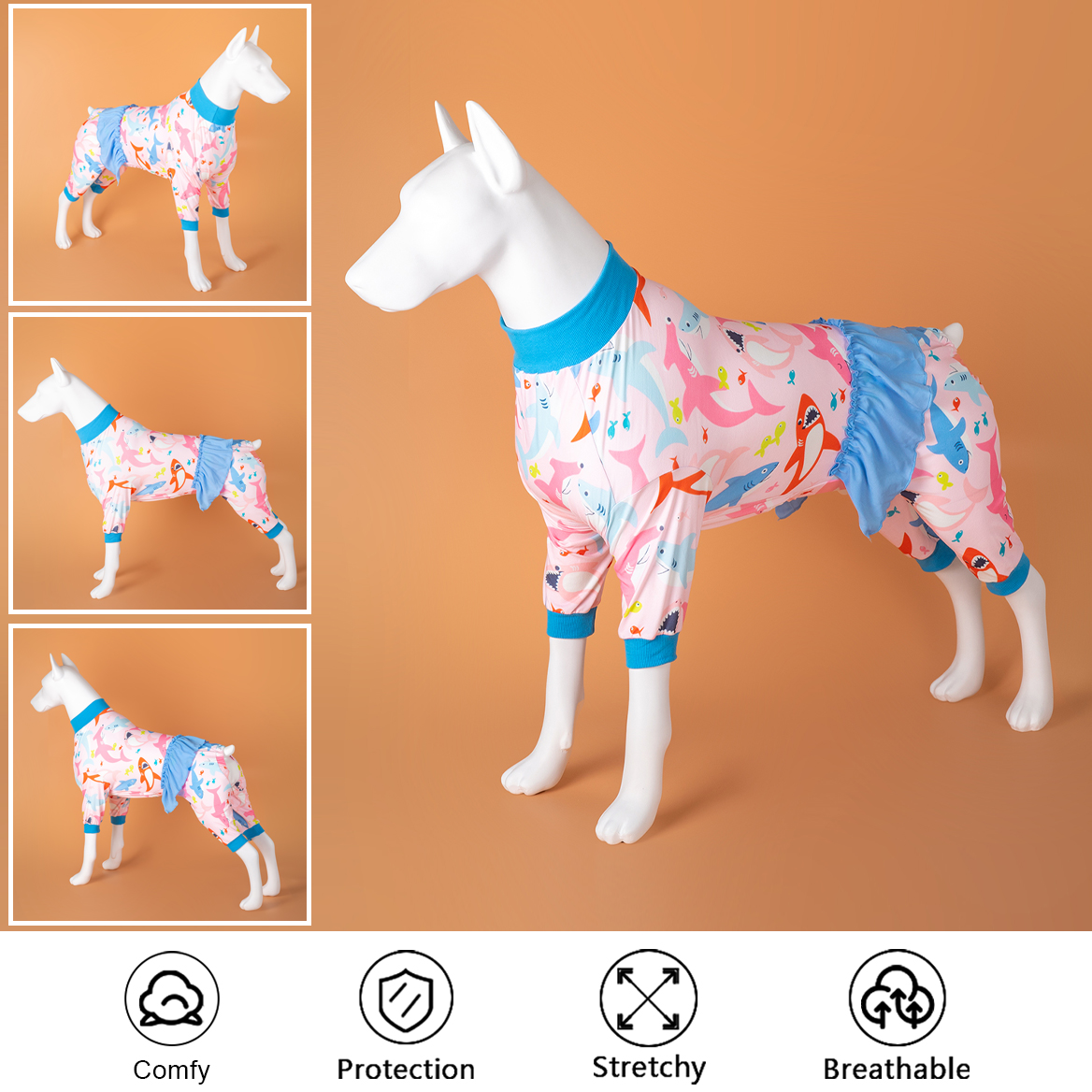 Lovinpet dog pjs can be used in all seasons, It is breathable and has the function of UV protection, soft, skin-friendly, so it can be worn as dog pajamas and outerwear in summer, and can also be worn as a bottoming shirt in dog coats or dog dresses.