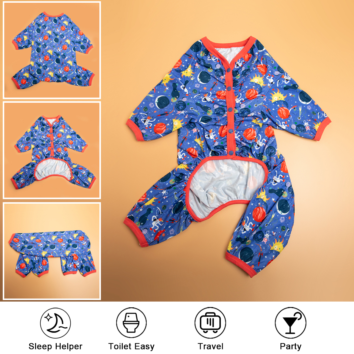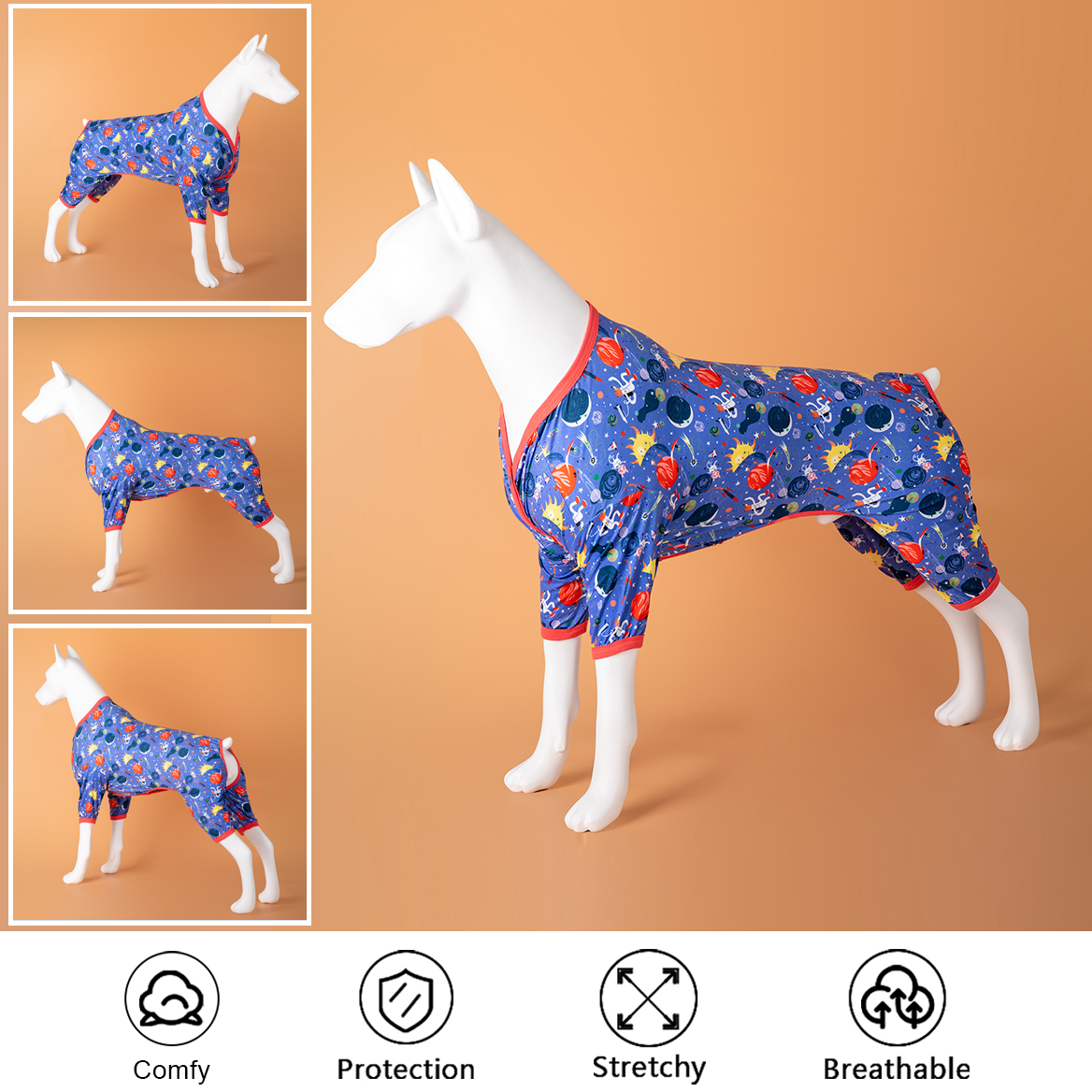 ADVANTAGE POINTS: Our dog t-shirt has the functions of sun protection & reducing hair loss, anti-licking, anxiety relief and make our dogs feel warm and comfy at night in all seasons. Dogs wearing pjs for holidays can make your home full of joy.