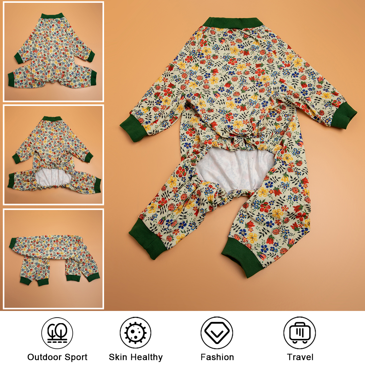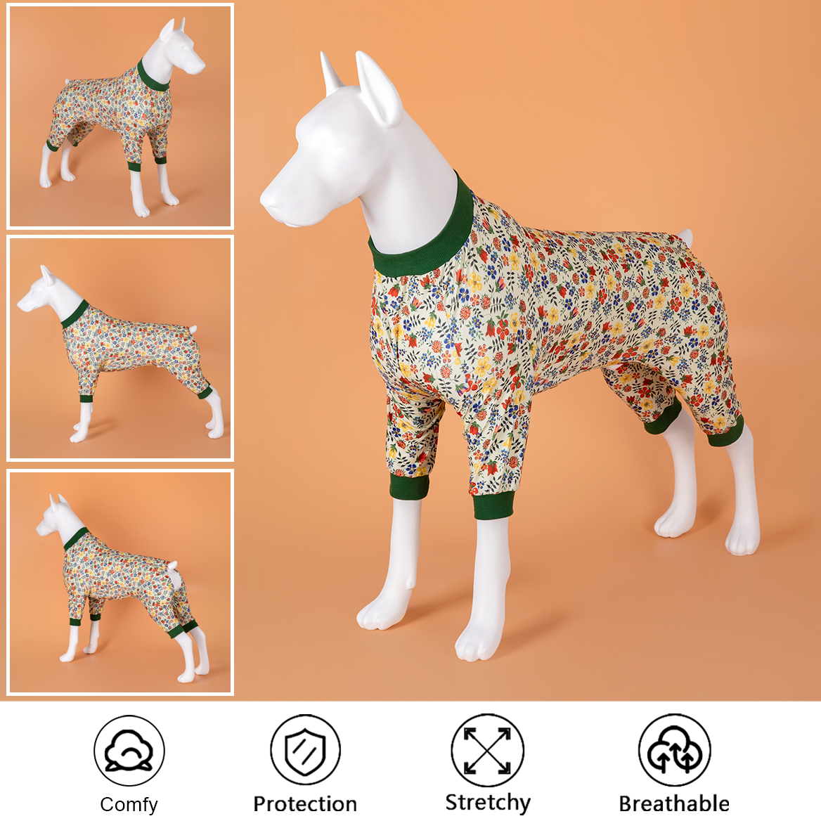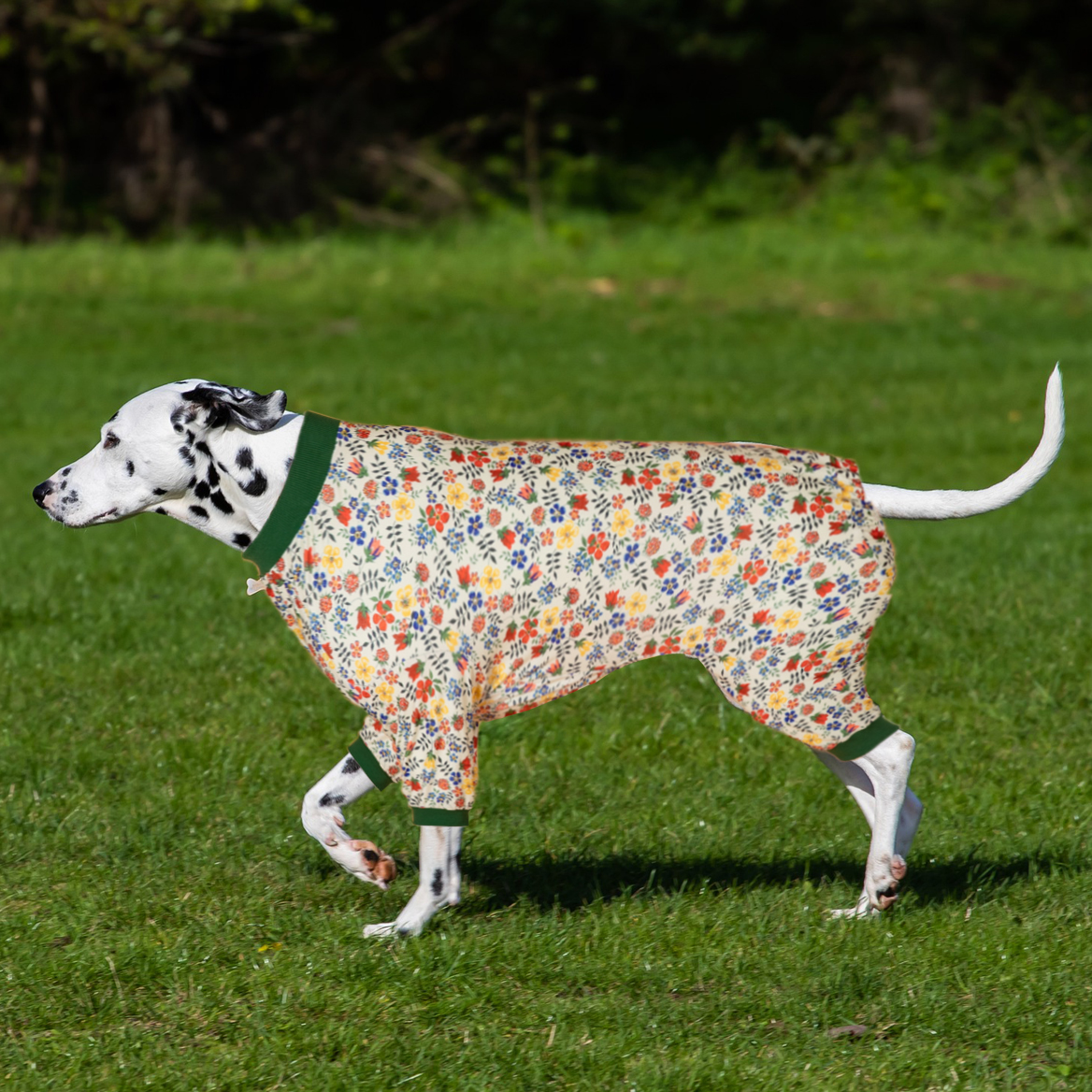 pitbull pajamas are designed with fashion Classic flowers White/Multi prints. You can choose your favorite prints & styles to make your doggy attractive and full of charming! Making your furry baby stand out with for example, If the wound is obvious after surgery, or when the skin is sensitive, wearing cute dog pajamas can avoid embarrassment and let our dog regain self-confidence faster