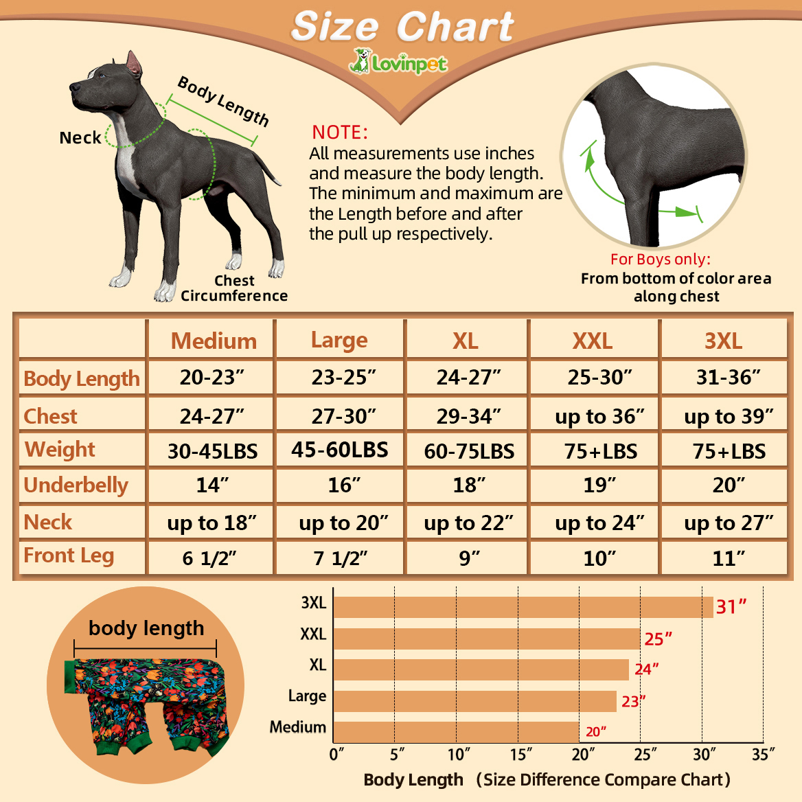 • LOVINPET dog pjs for large dogs is for short-haired or terrier dogs, such as Pitbull, Bulldog, Beagle Labrador, Golden Retriever, Rottweiler, etc. Please measure the size carefully before purchasing this present for your doggy.