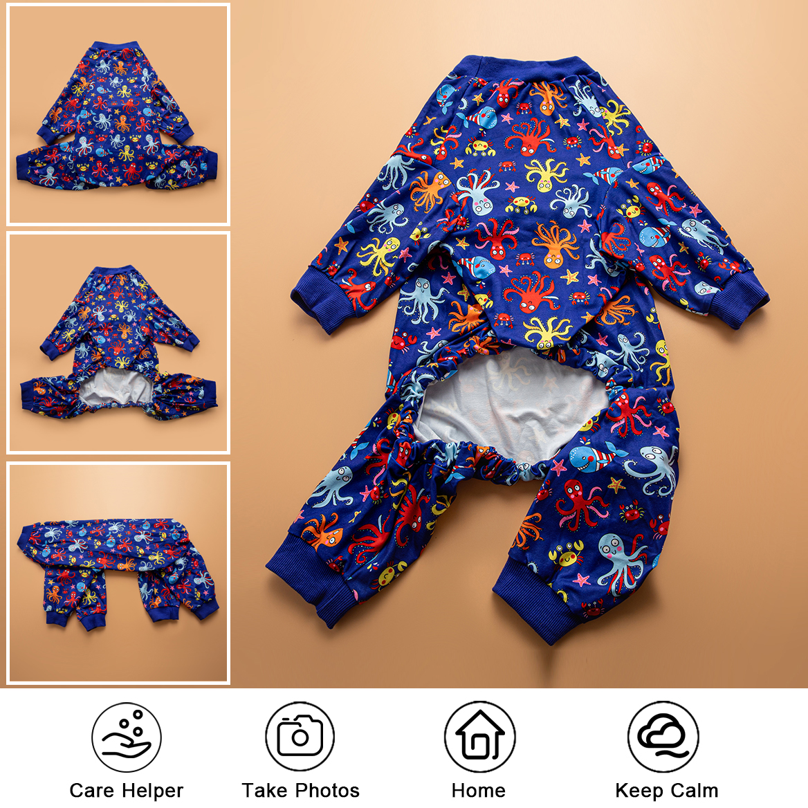 • LOVINPET LovinPet dog pjs for large dogs suitable of UV protection & reducing hair loss, anxiety relief and keep him/her warm at night in summer. The full coverage design can reduces heat loss and keeps warm in winter.