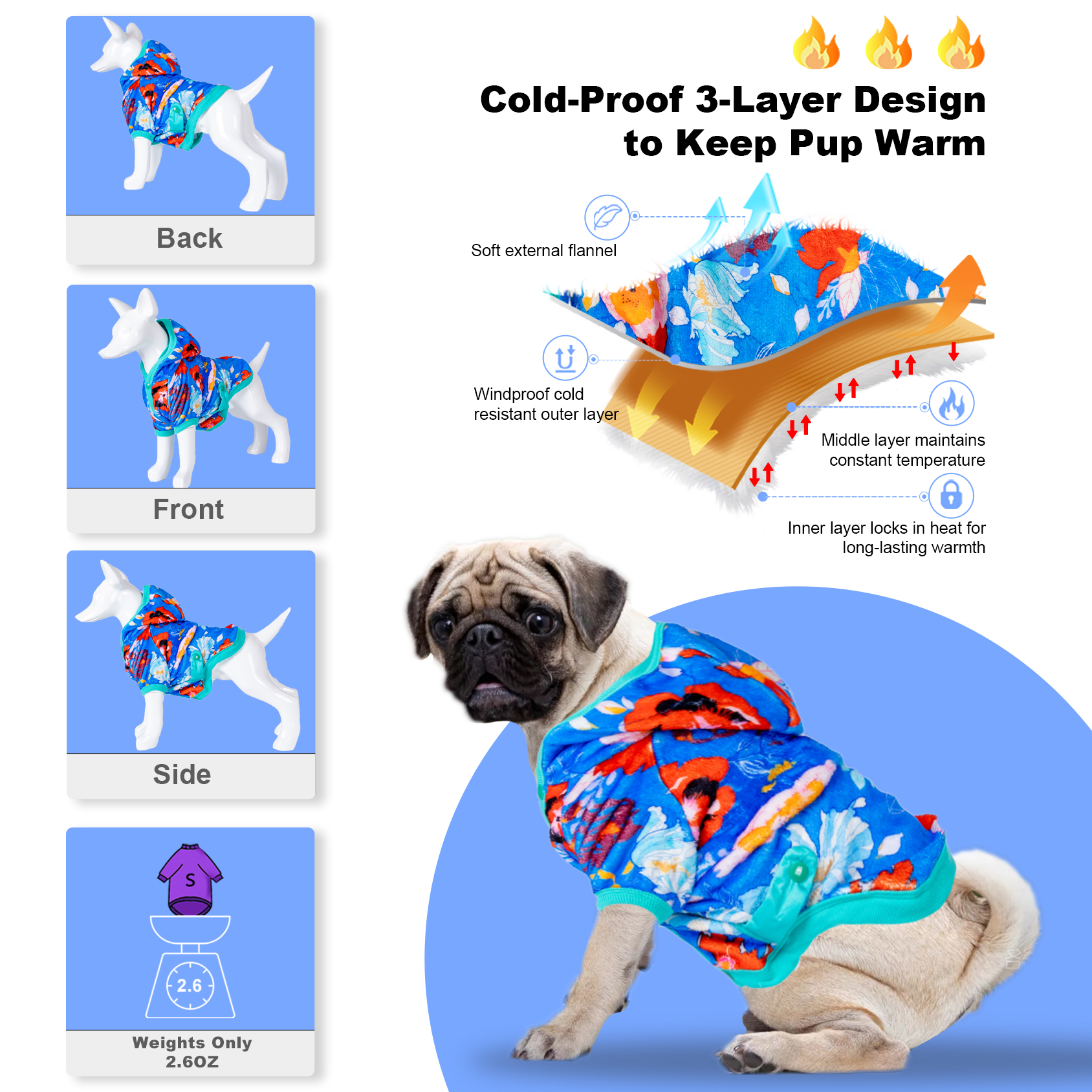 Let warmth and love continue on pets: Dogs are also afraid of the cold in winter and are easy to get sick. Dogs also need a winter dog coat to protect themselves. So at least 10 reasons to recommend you to buy a LovinPet dog flannel winter coats: