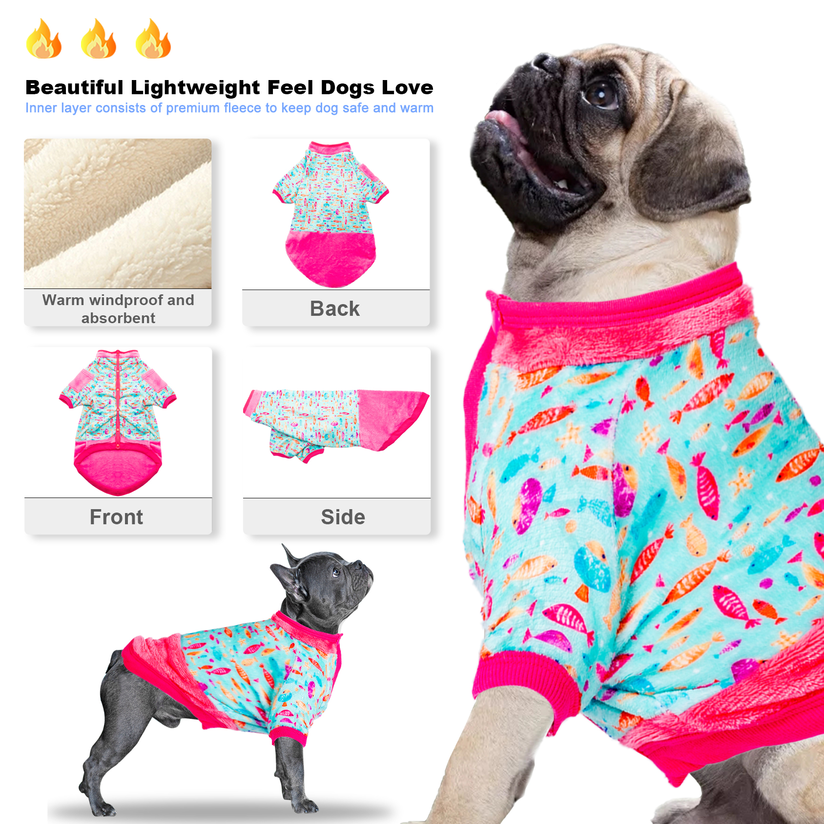 10. Put on small fish light aqua prints dog clothes,make your dog be the most eye-catching one!