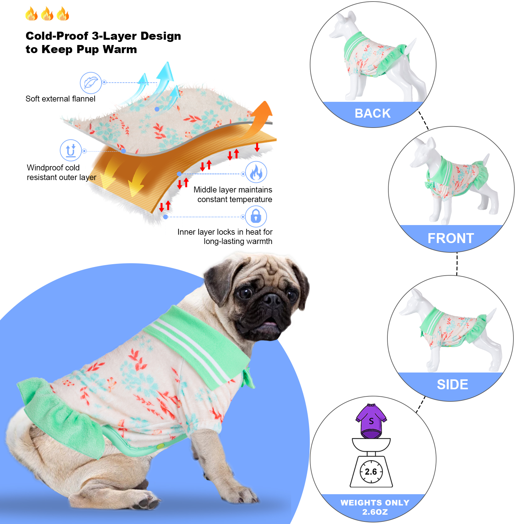 Let warmth and love continue on pets: Dogs are also afraid of the cold in winter and are easy to get sick. Dogs also need a winter dog coat to protect themselves. So at least 10 reasons to recommend you to buy a LovinPet dog flannel winter coats: