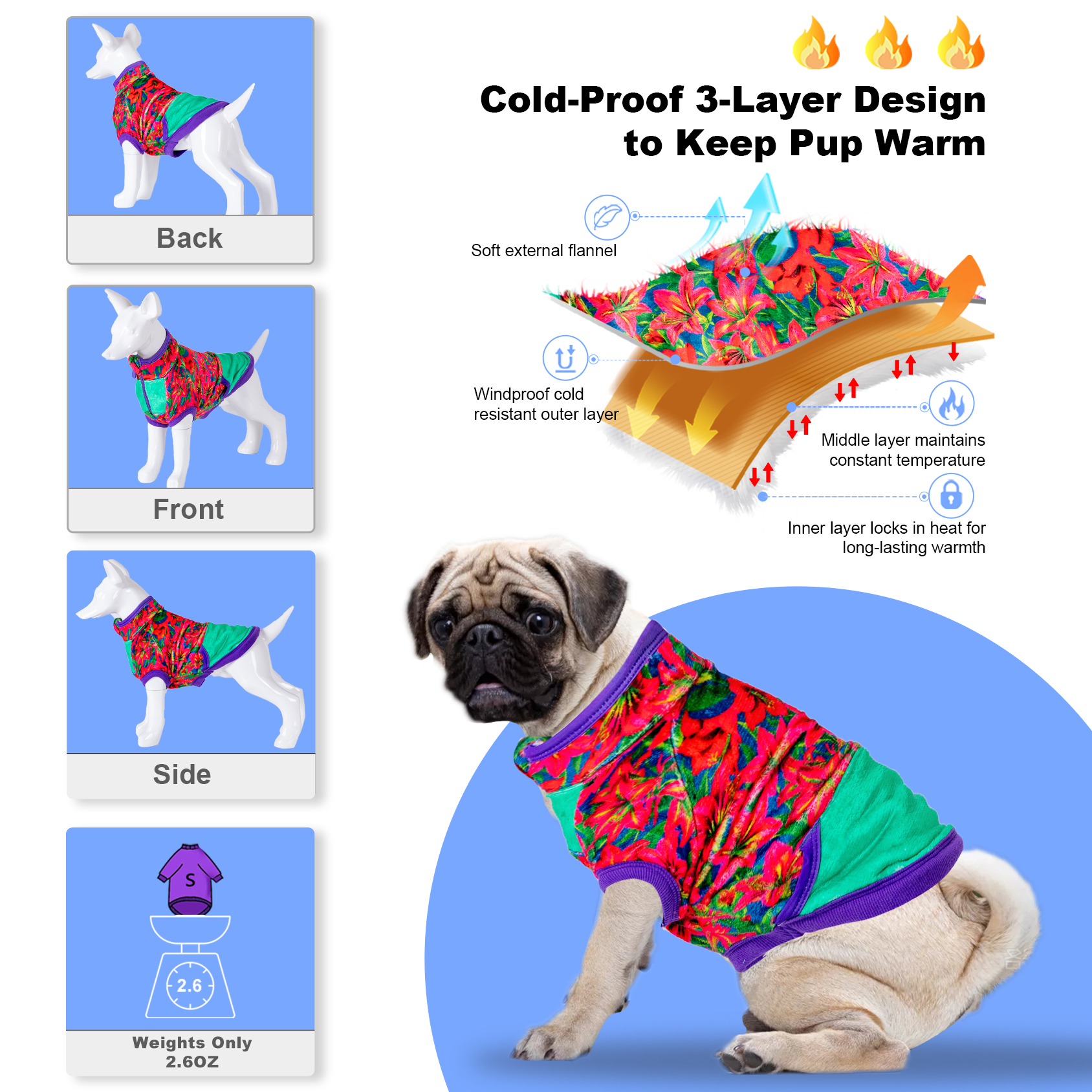 Let warmth and love continue on pets: Dogs are also afraid of the cold in winter and are easy to get sick. Dogs also need a winter dog coat to protect themselves. So at least 11 reasons to recommend you to buy a LovinPet dog flannel winter coats: