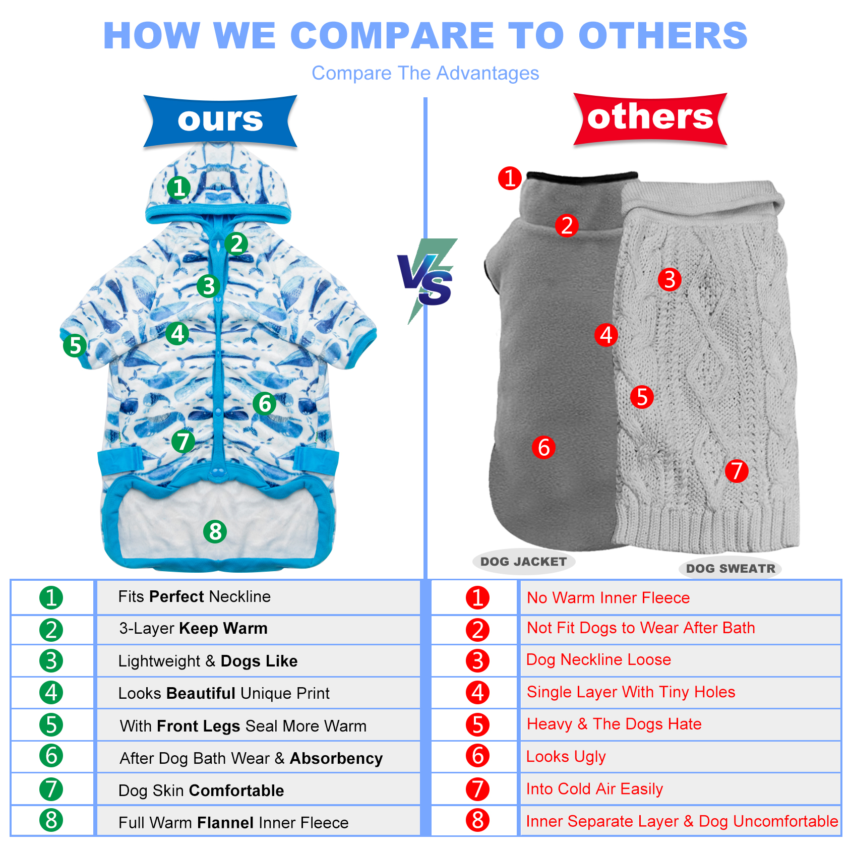 Let warmth and love continue on pets: Dogs are also afraid of the cold in winter and are easy to get sick. Dogs also need a winter dog coat to protect themselves. So at least 10 reasons to recommend you to buy a LovinPet dog flannel winter coats: